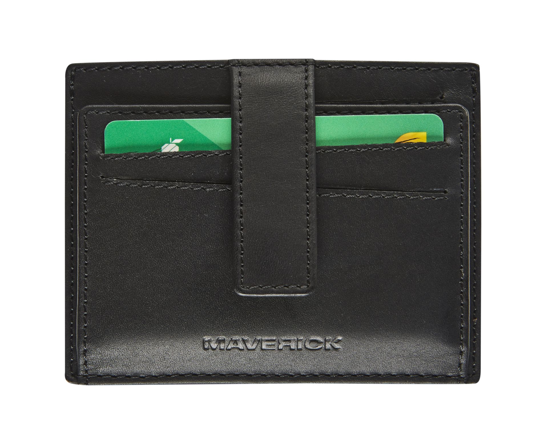Maverick Kaarthouder All Black RFID met Drukknop Leder Zwart