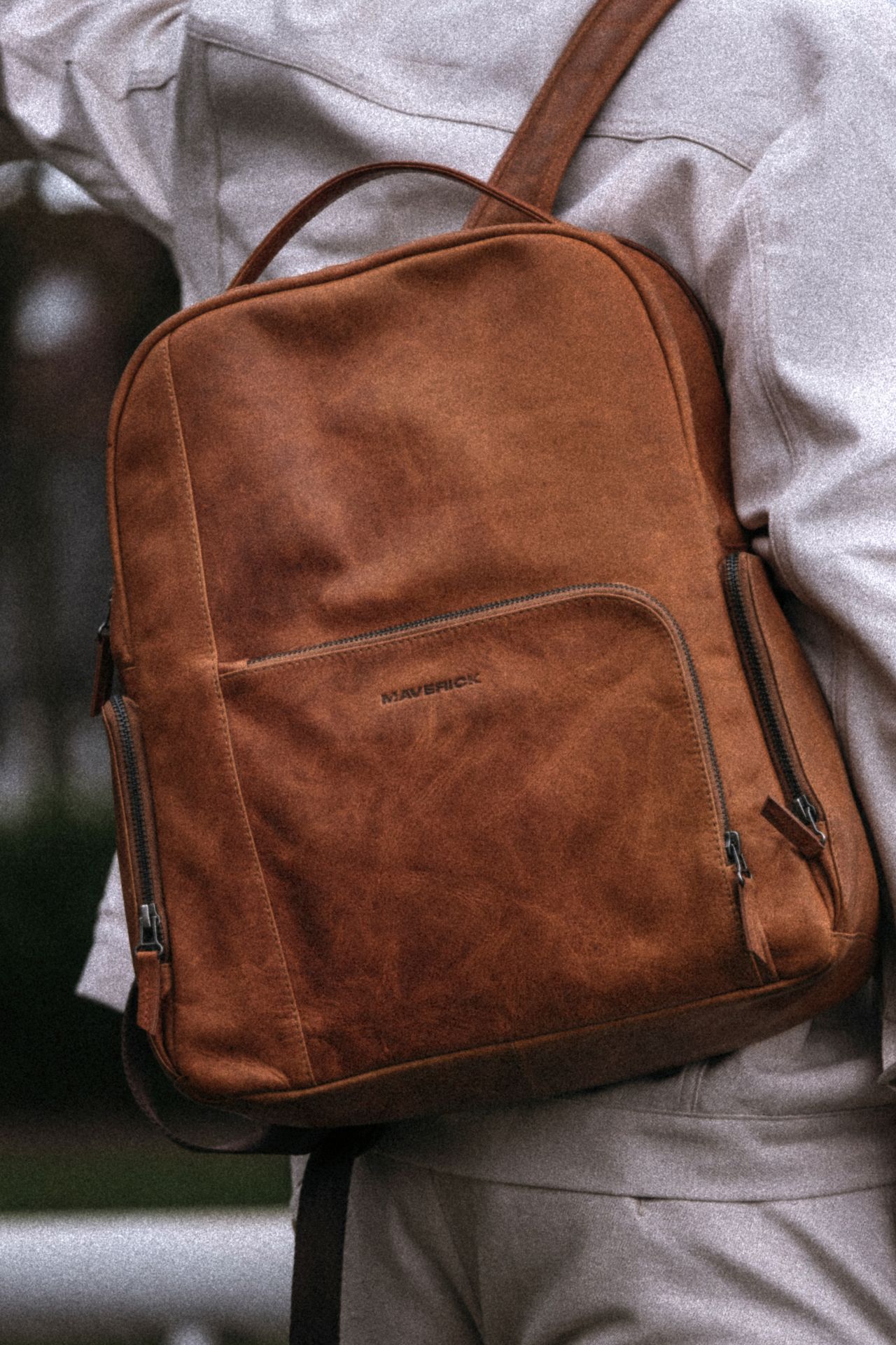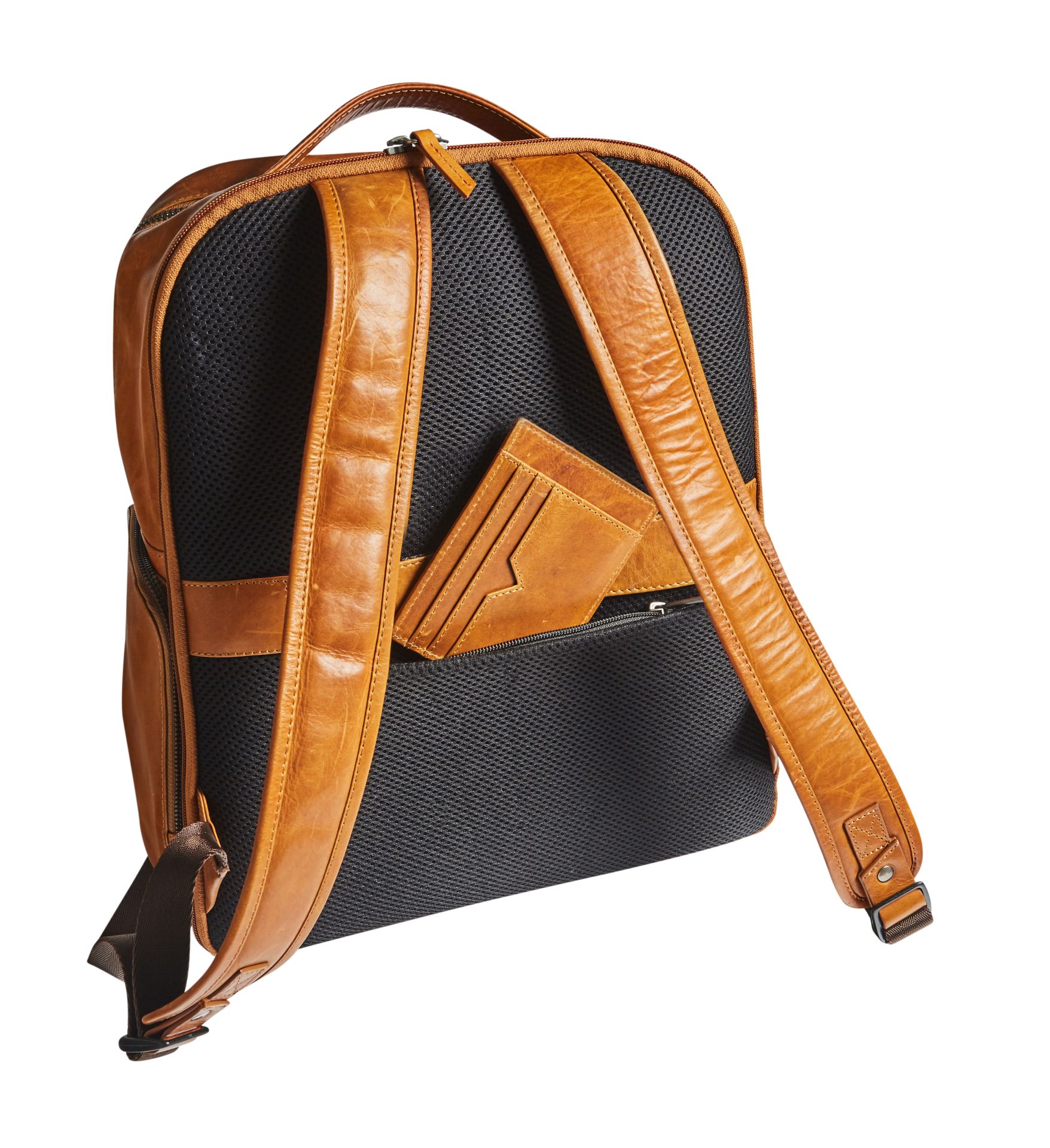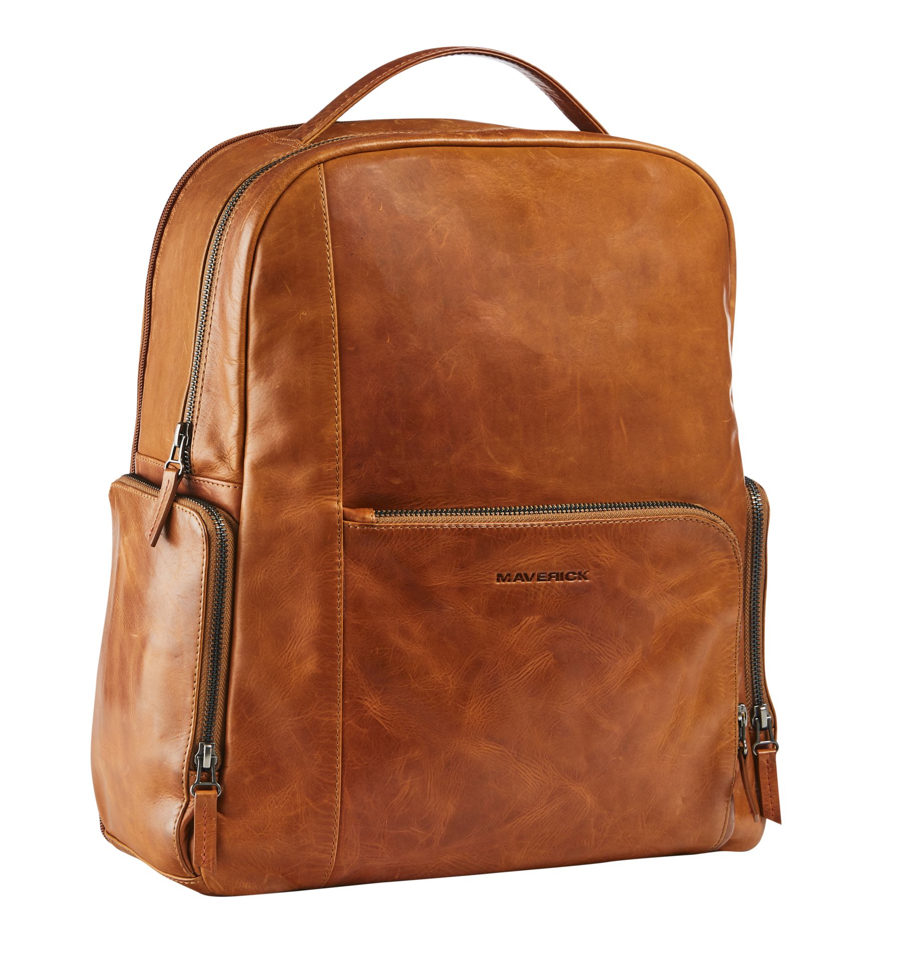 Maverick Rugzak New Men Cognac - Leder - met Laptopvak 14"