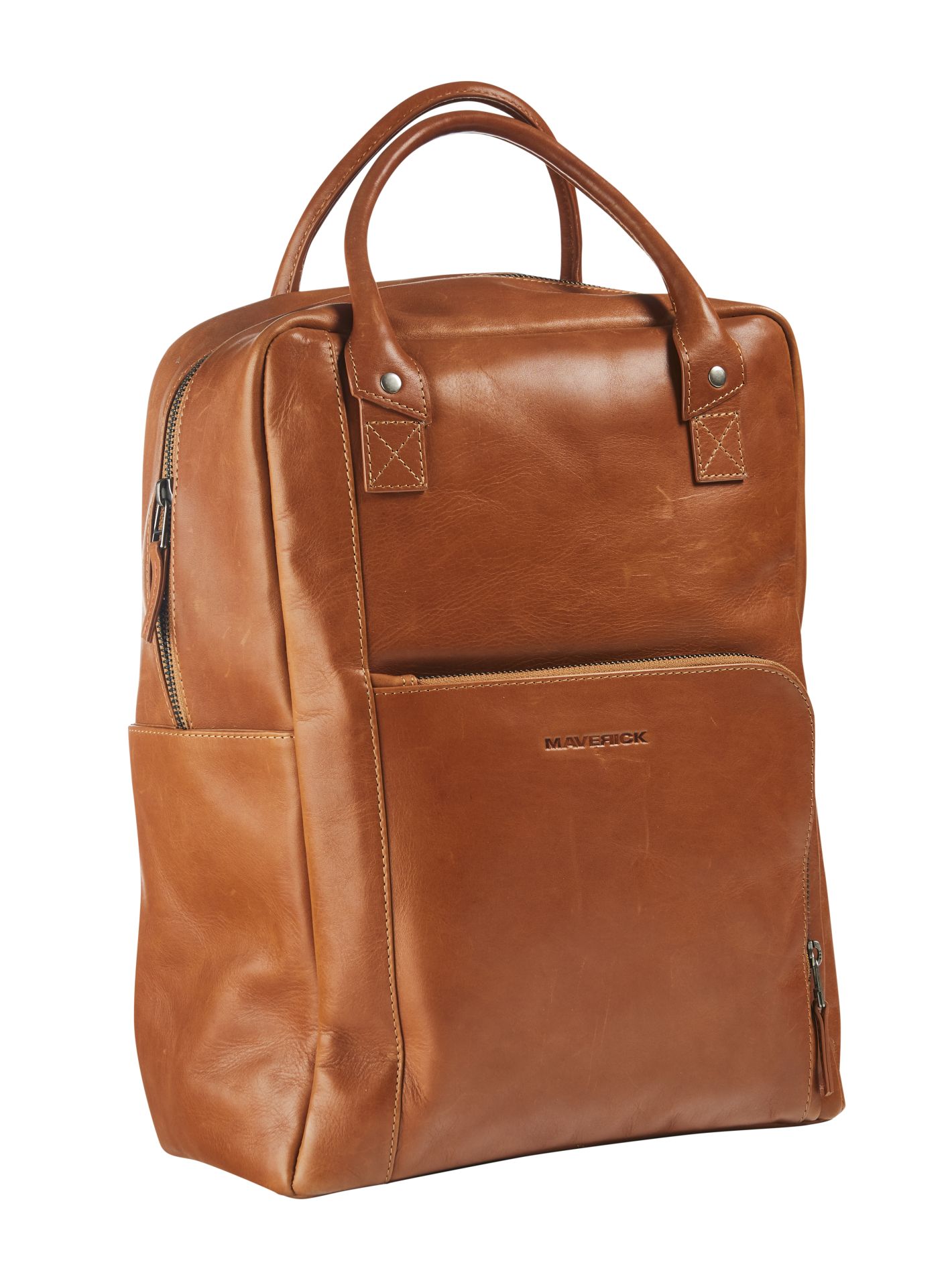 Maverick Rugzak New Men Cognac - Leder - met Laptopvak 15"