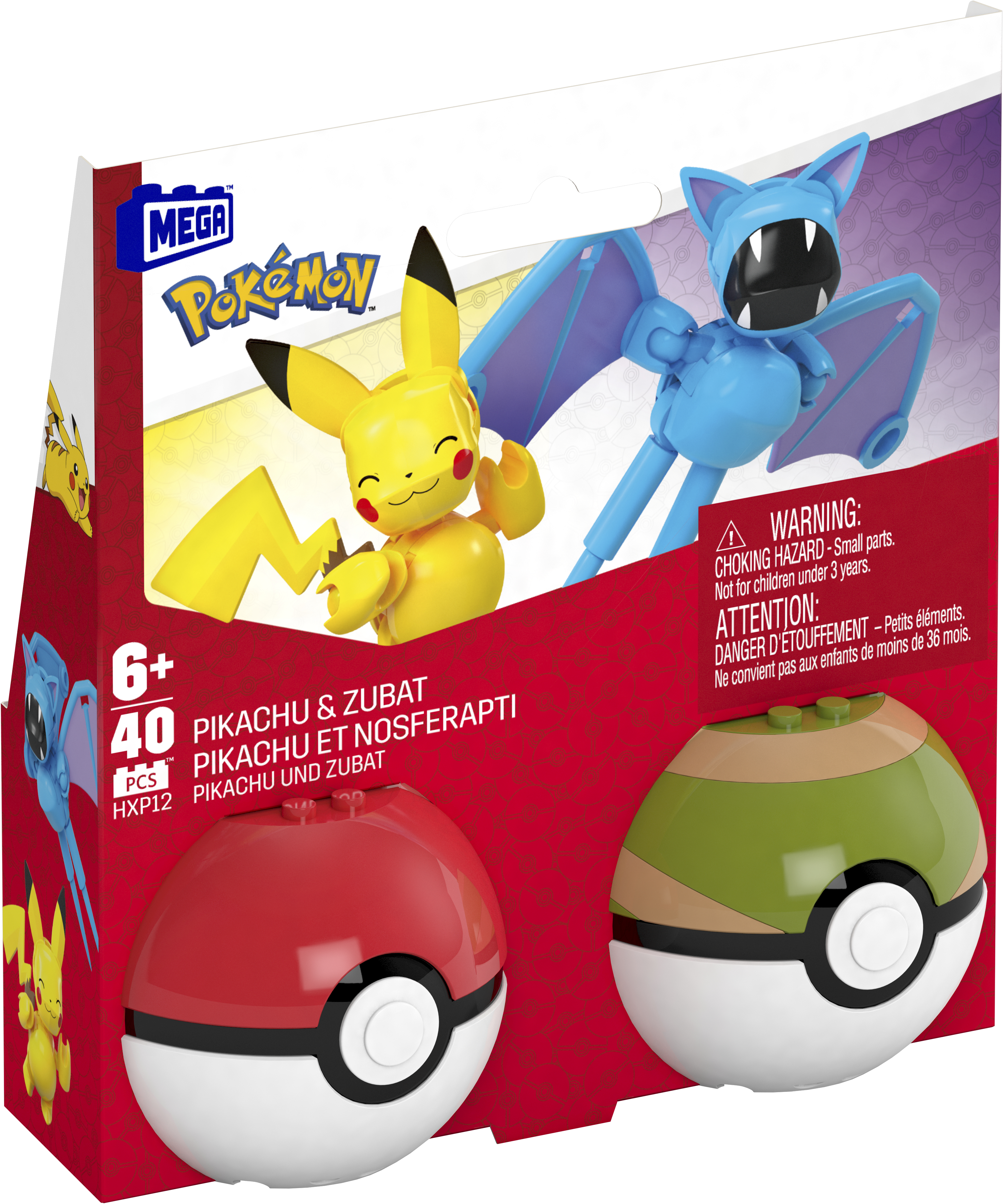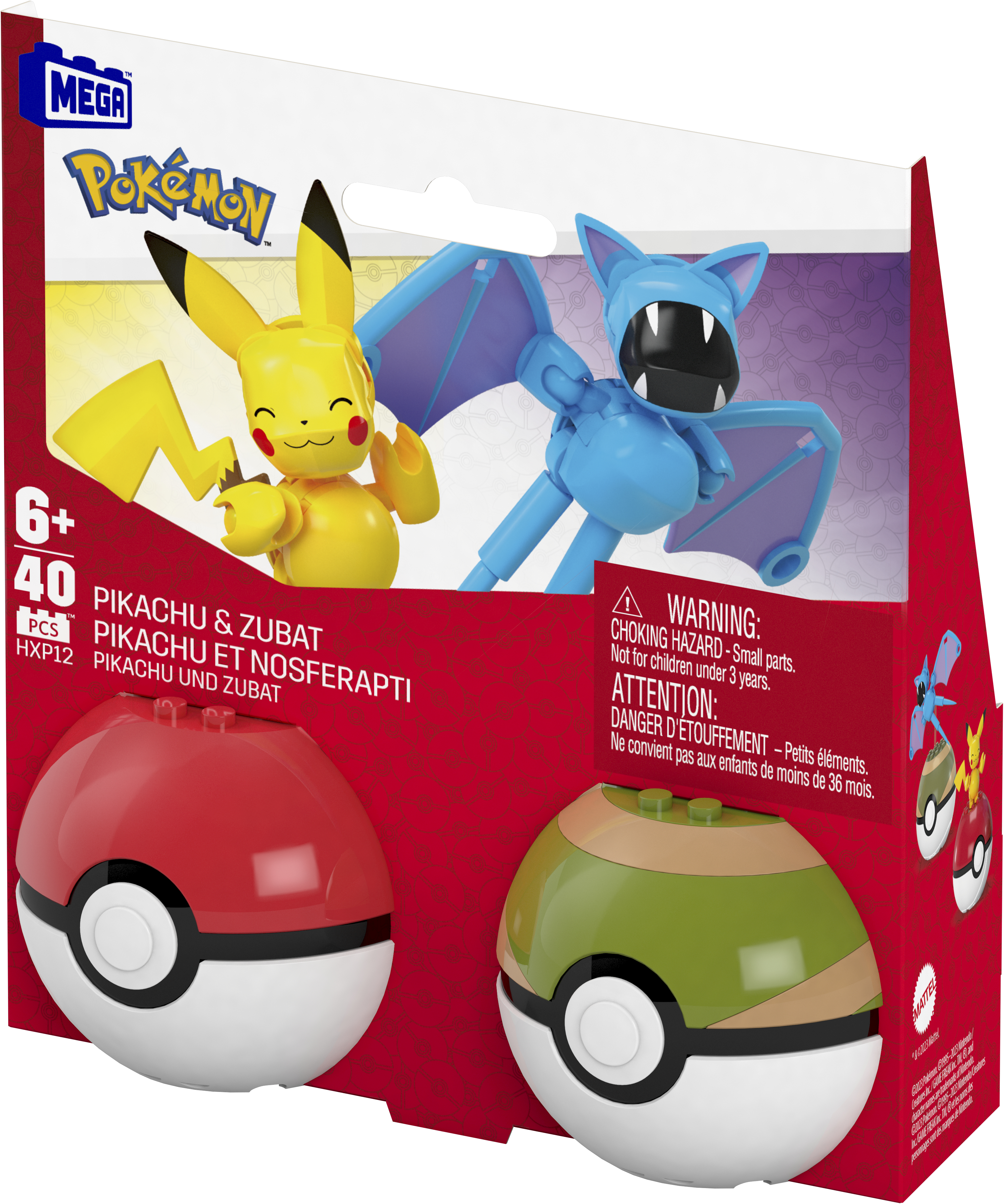 Mega Construx Pokemon, Pokeball 2 pack, Pikachu & Zubat