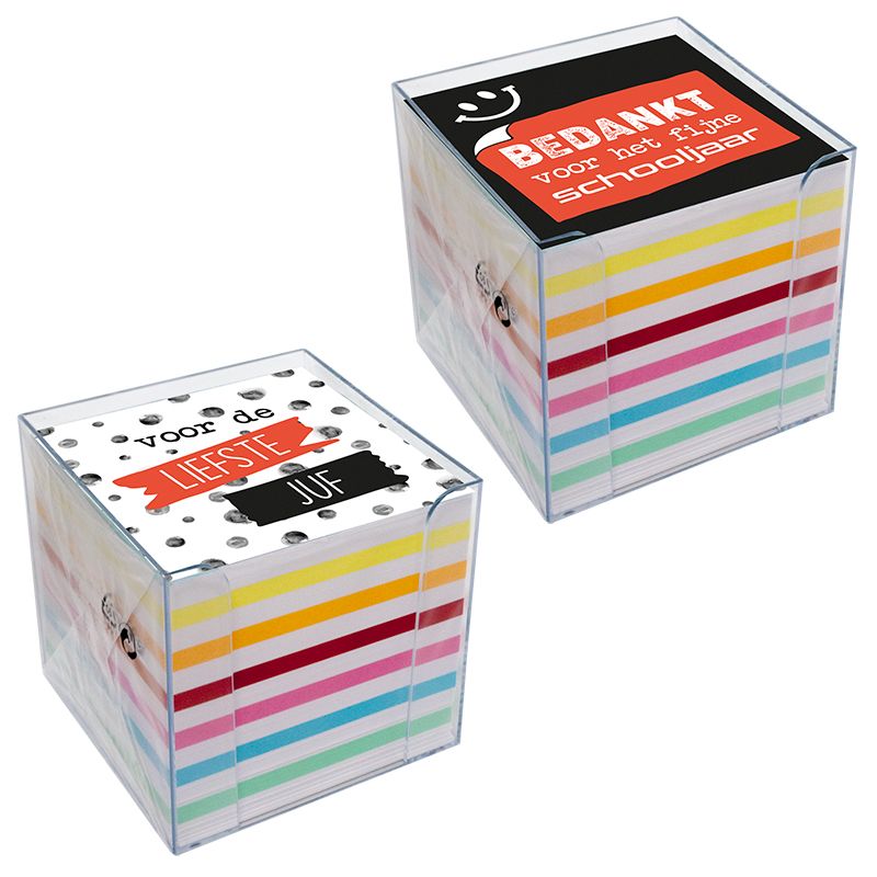Memo Kubus Gekleurd/Wit 9x9 cm Liefste Juf