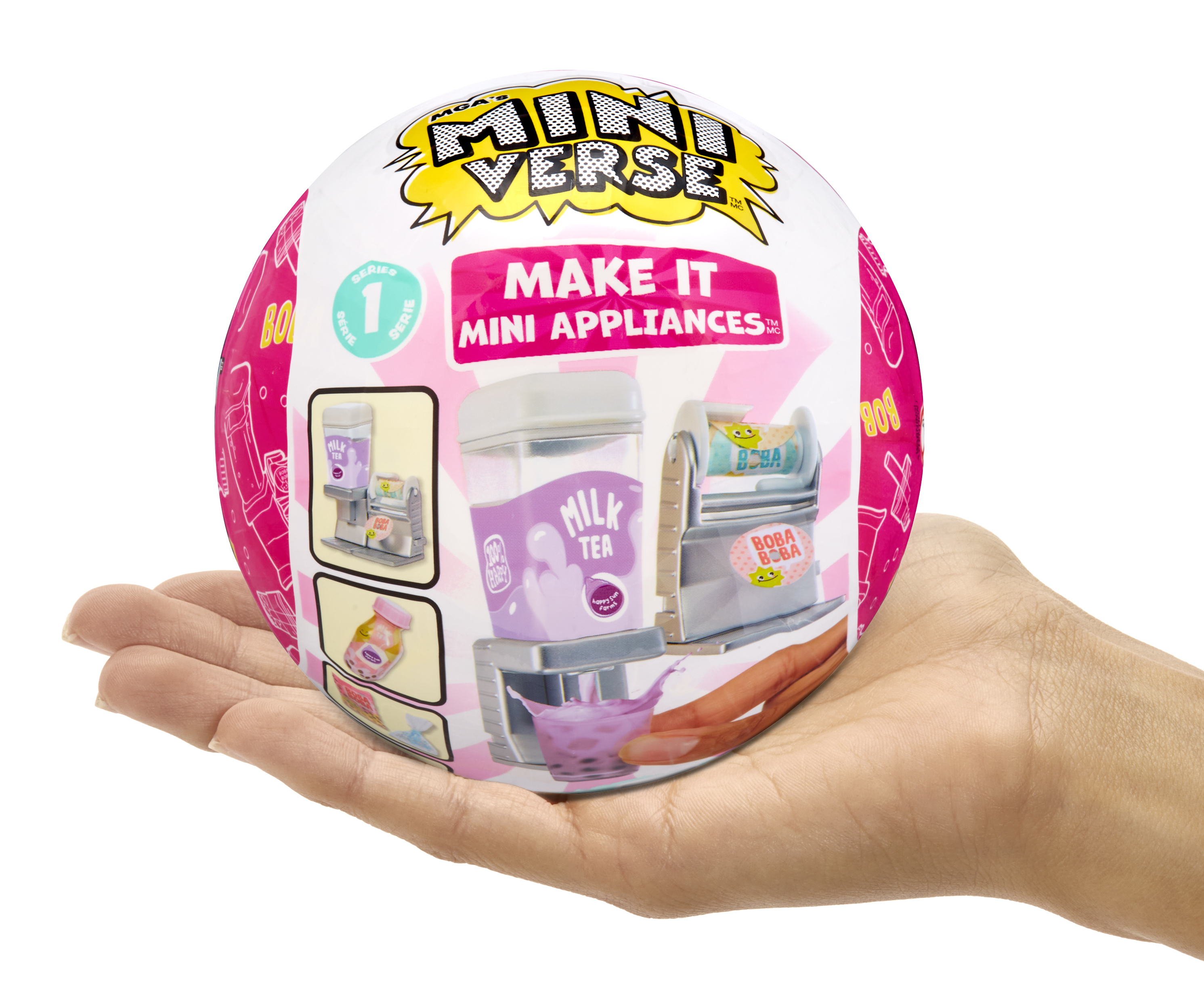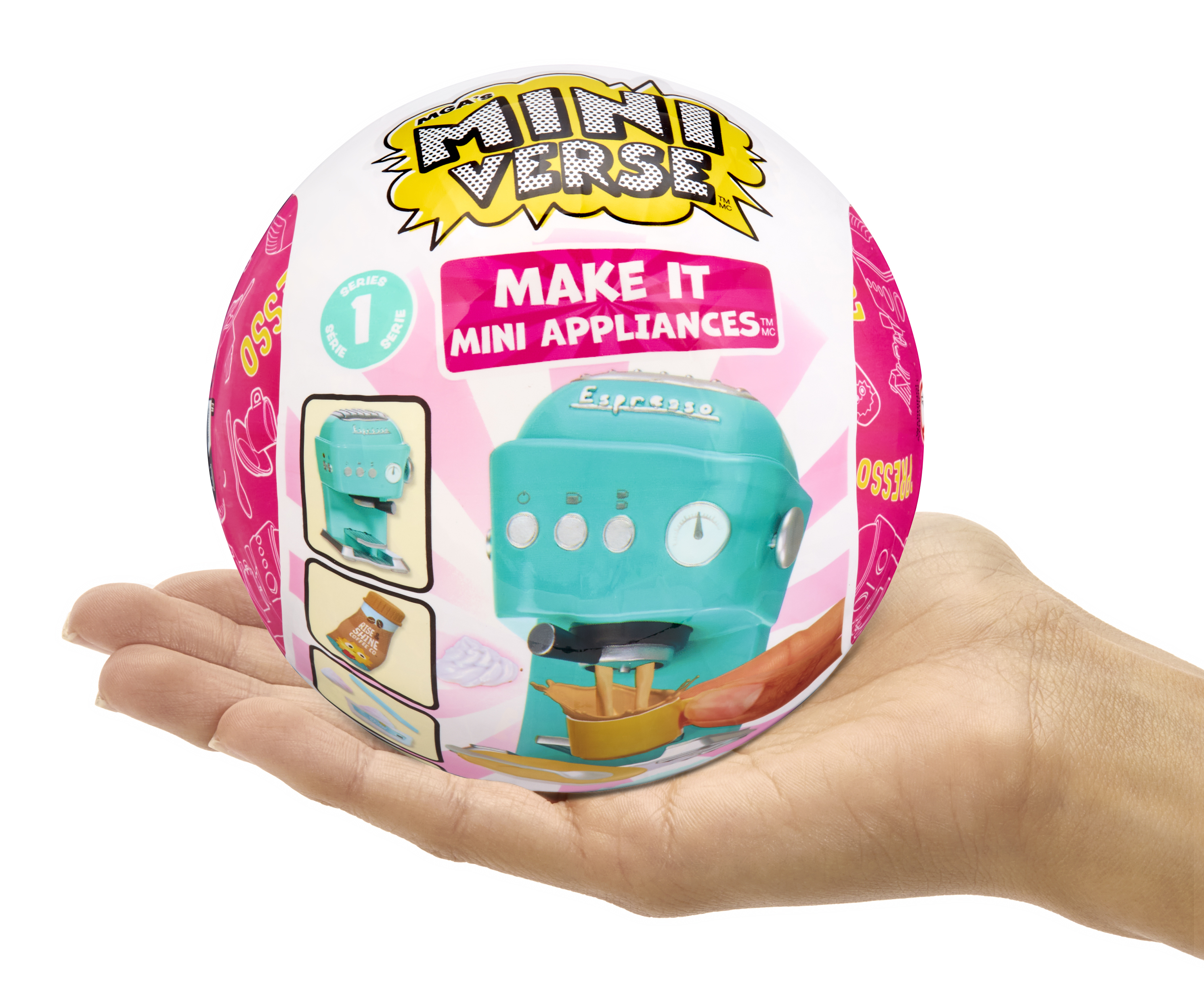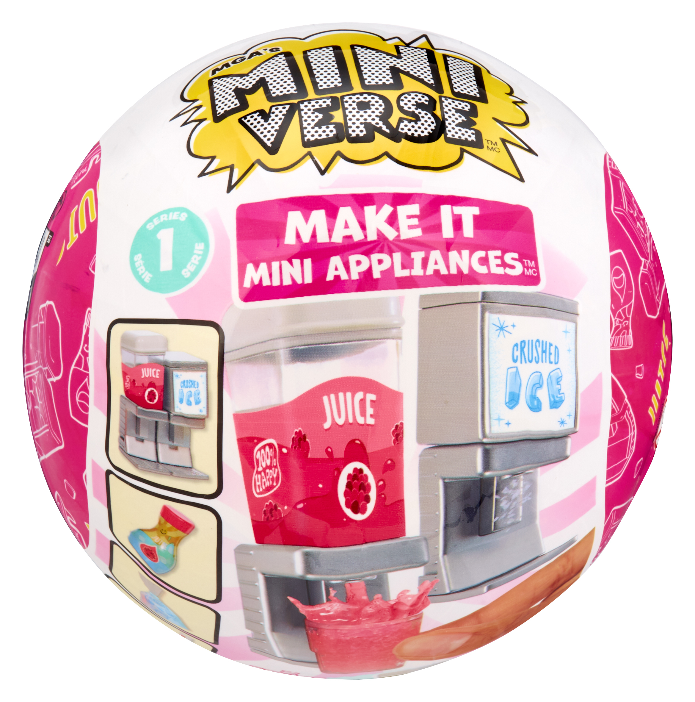 MGA's Miniverse™ Make It Mini Appliances™ met nieuwe Make It Mini™-manieren! Gloednieuwe mini-apparaten die echt werken! Gebruik deze apparaten om je favoriete Miniverse Make It Mini Food™-drankjes te maken, hard te laten worden en te showen.