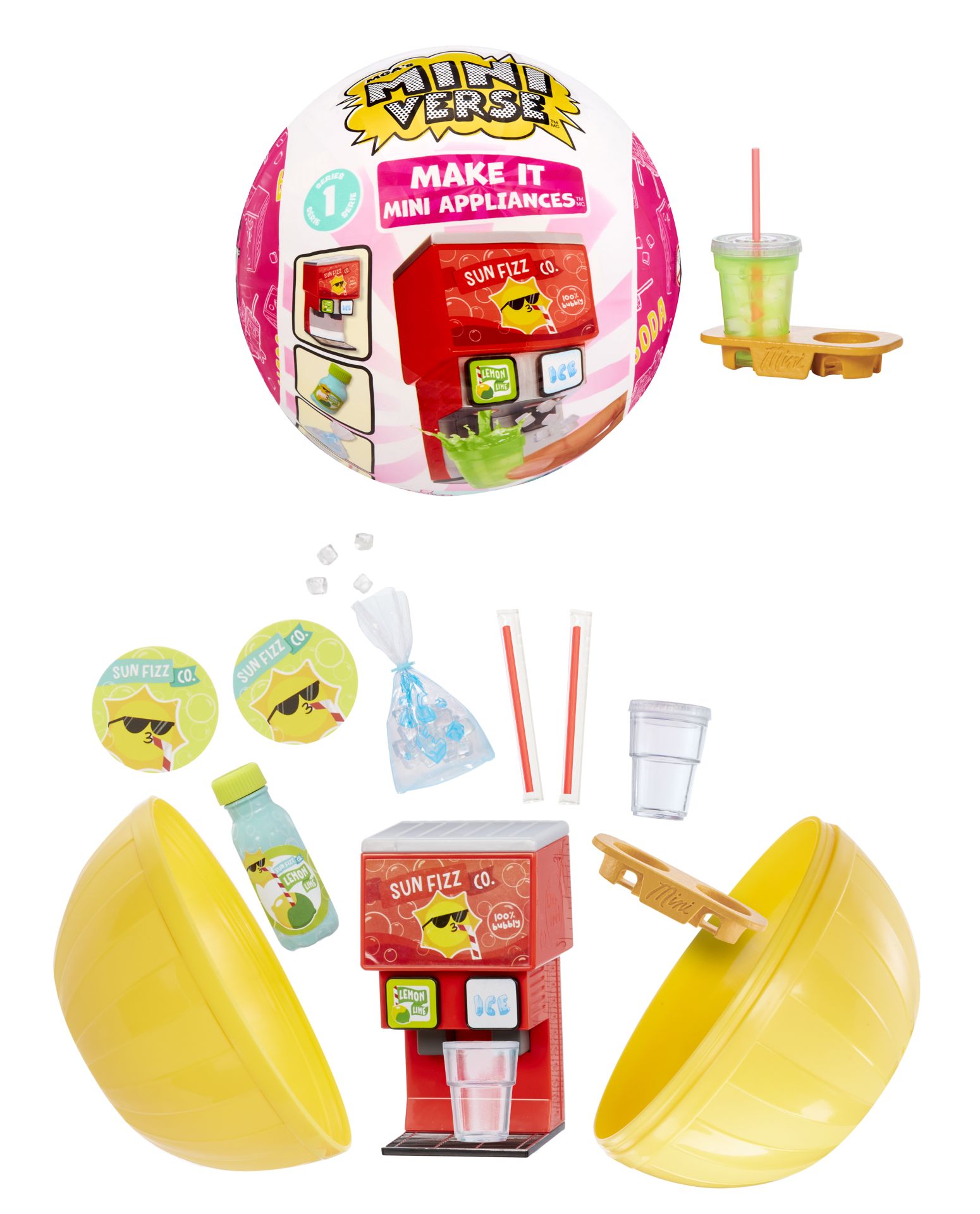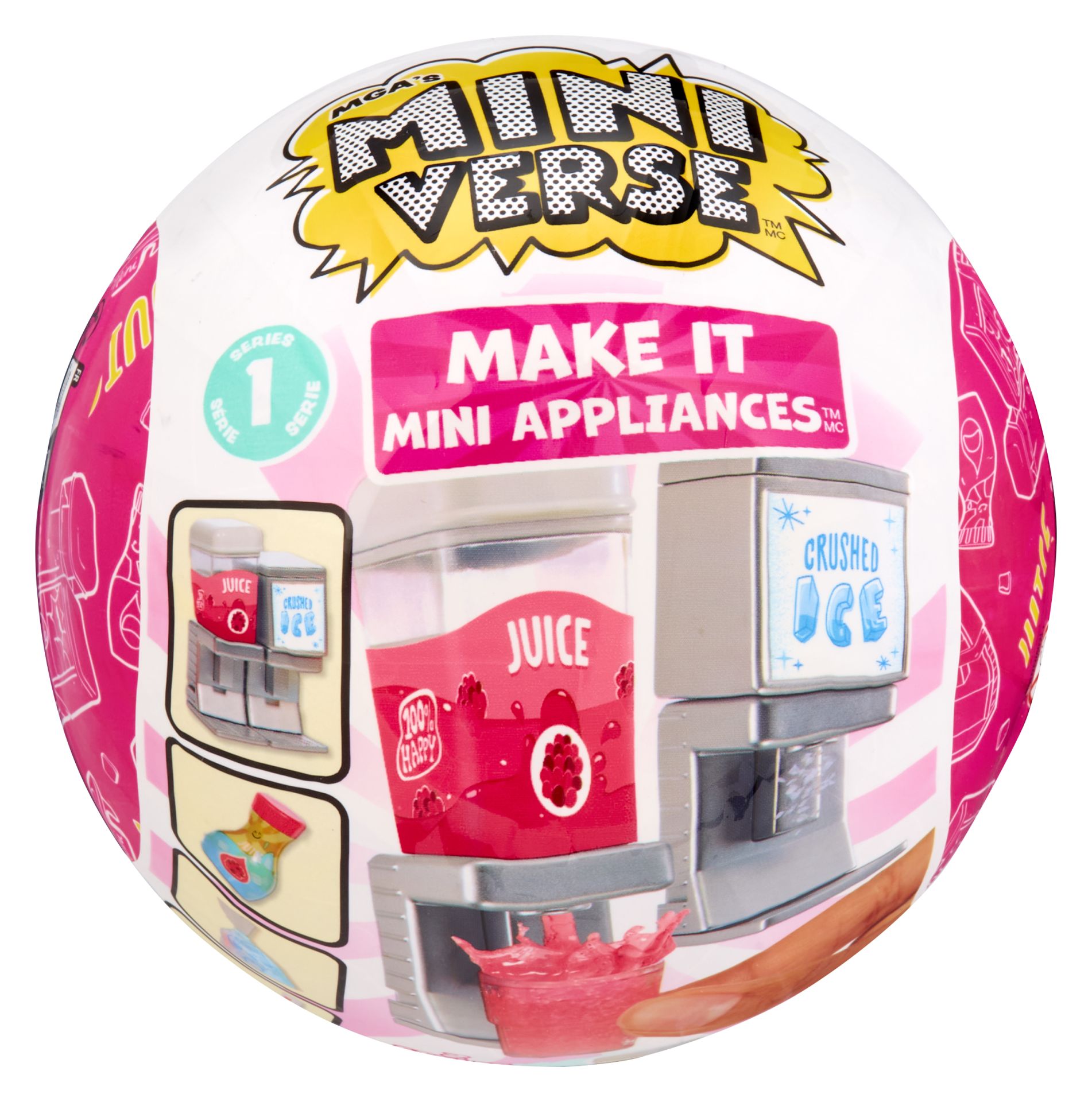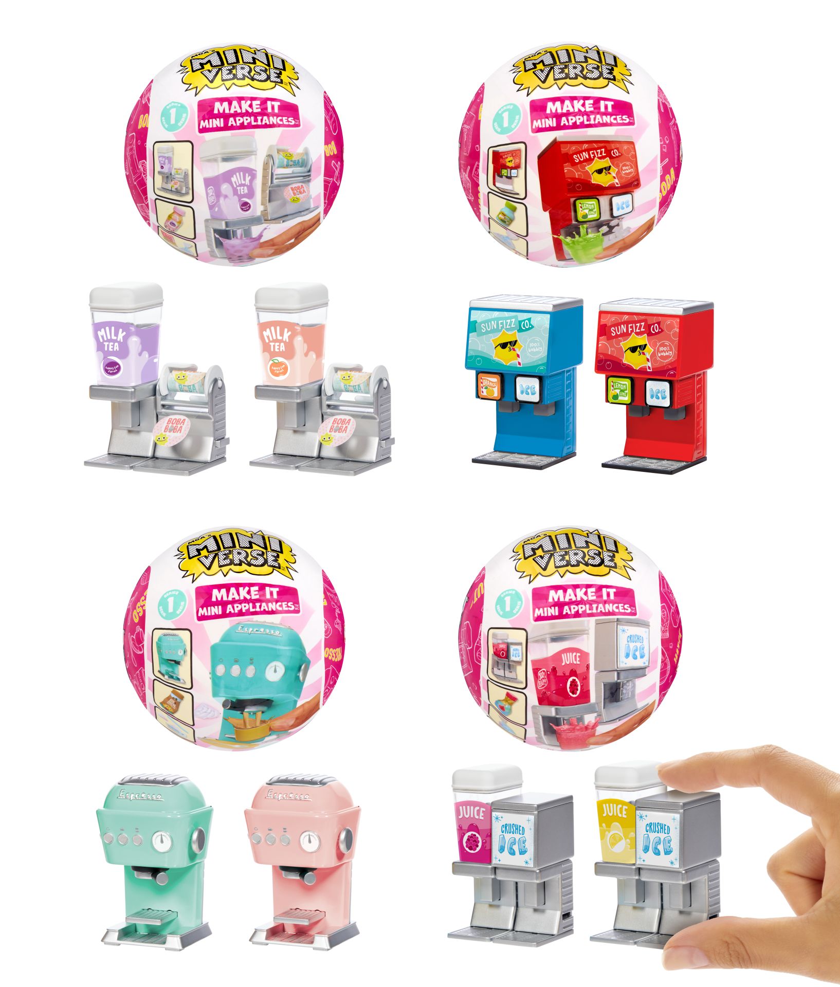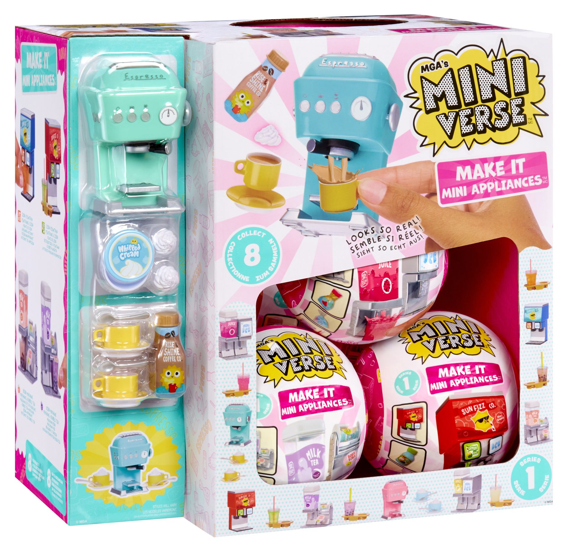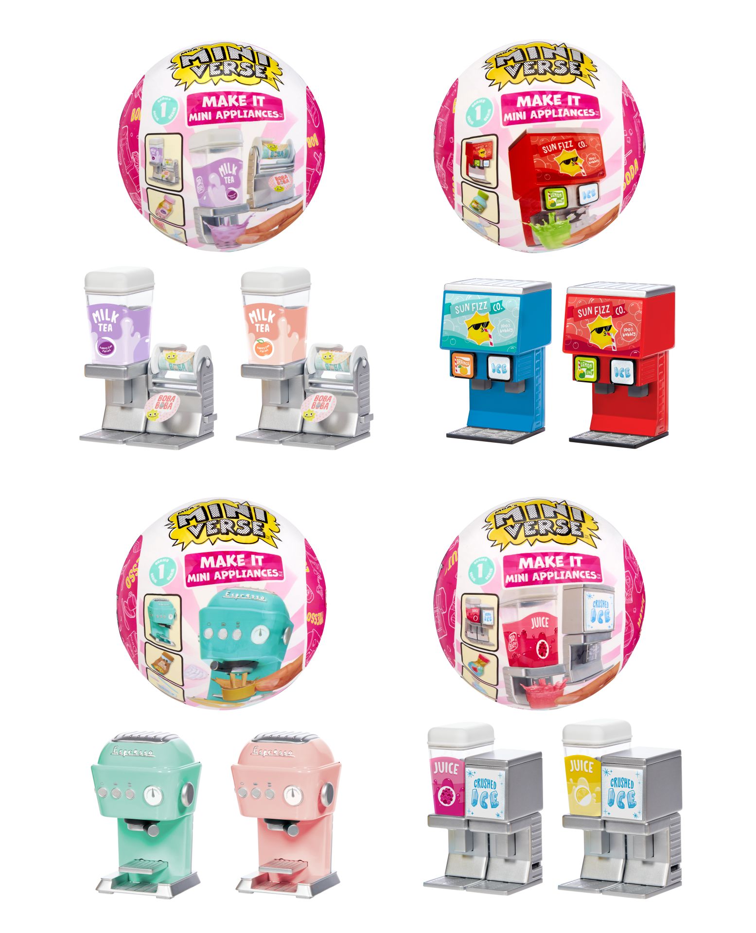 MAKE IT MINI APPLIANCES™: nieuwe Make It Mini™-manieren! Gloednieuwe mini-apparaten die echt werken! Gebruik deze apparaten om je favoriete Miniverse Make It Mini Food™-drankjes te maken, hard te laten worden en te showen