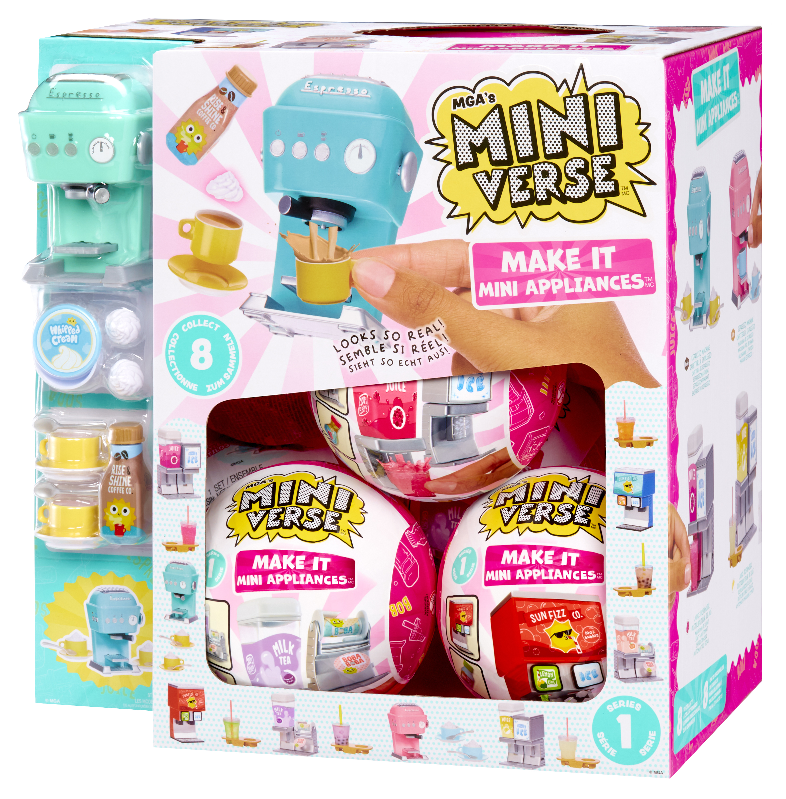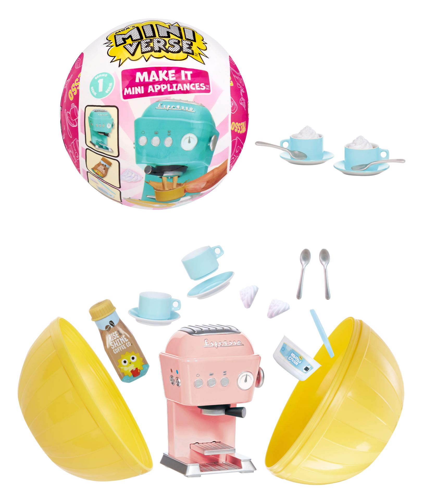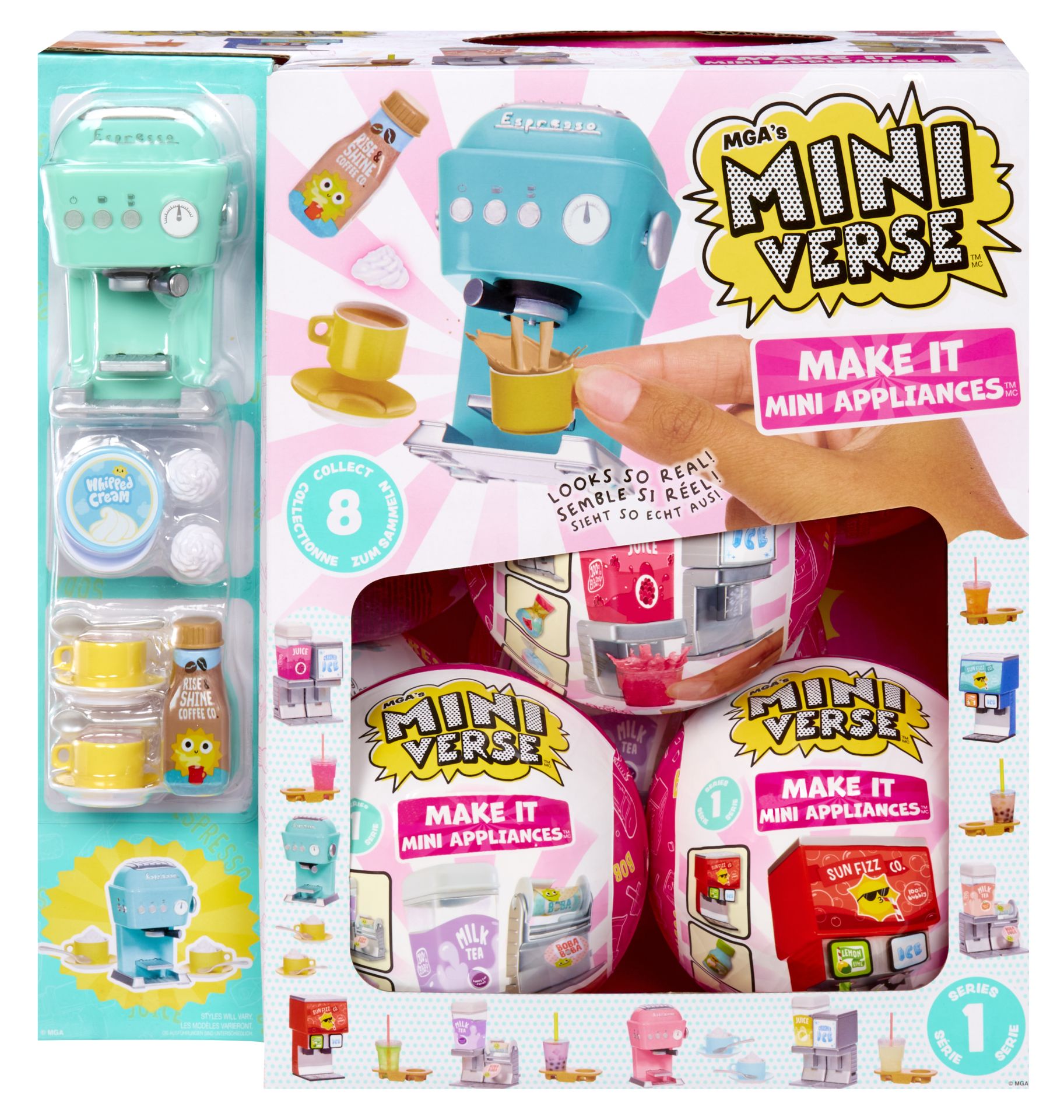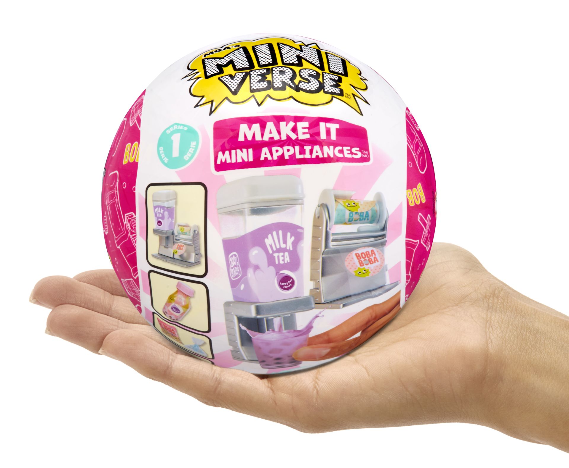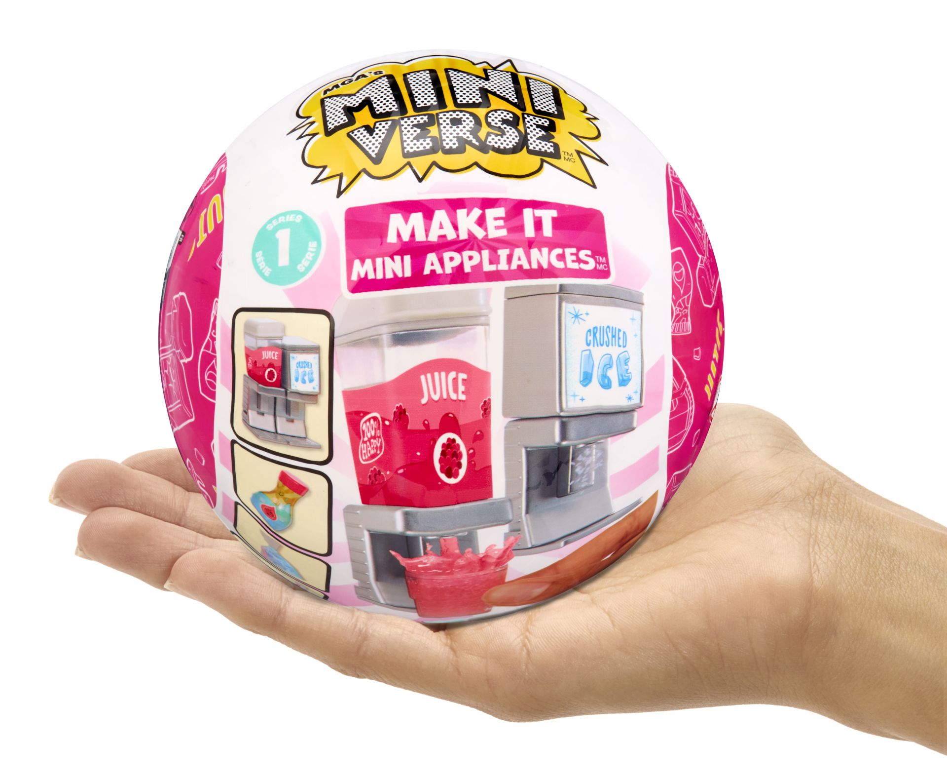 MAKE IT MINI APPLIANCES™: nieuwe Make It Mini™-manieren! Gloednieuwe mini-apparaten die echt werken! Gebruik deze apparaten om je favoriete Miniverse Make It Mini Food™-drankjes te maken, hard te laten worden en te showen