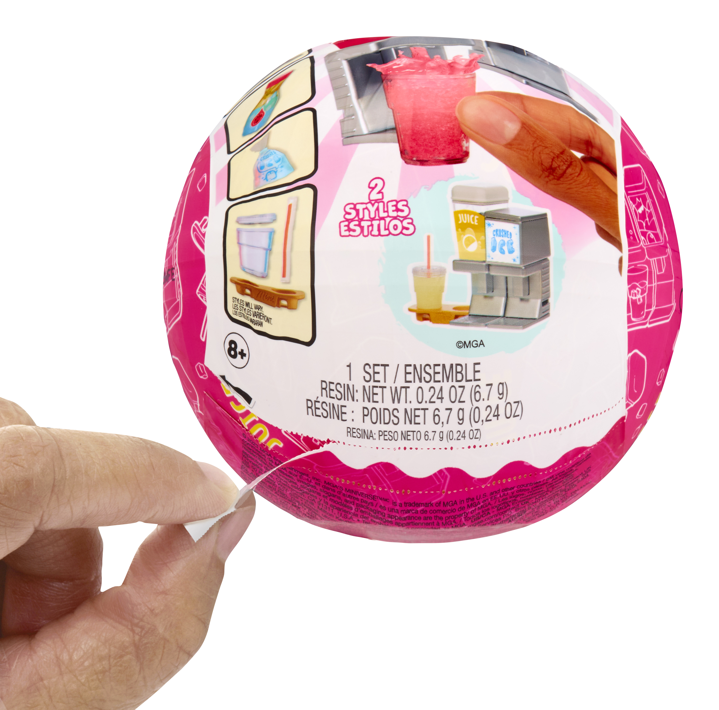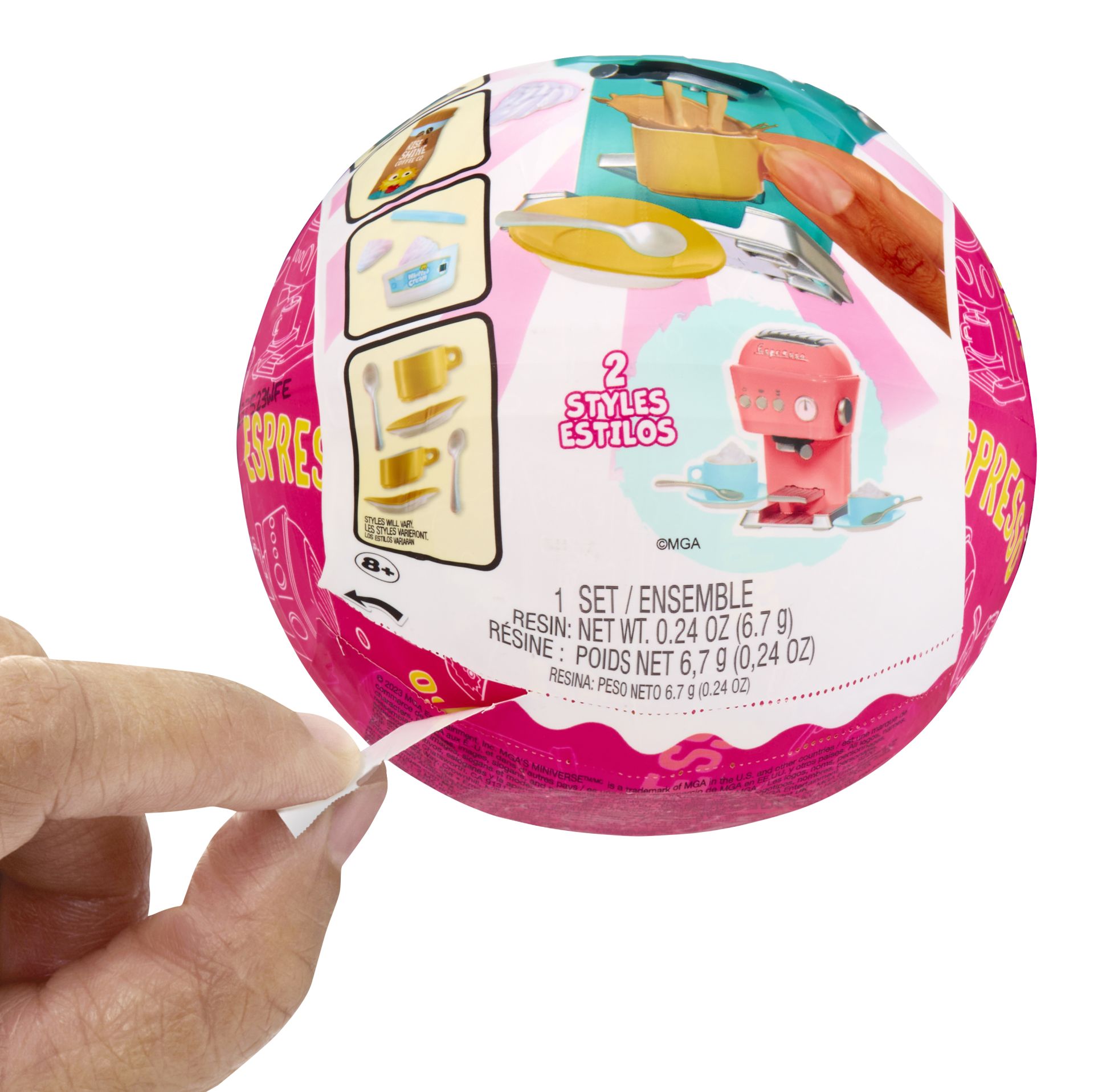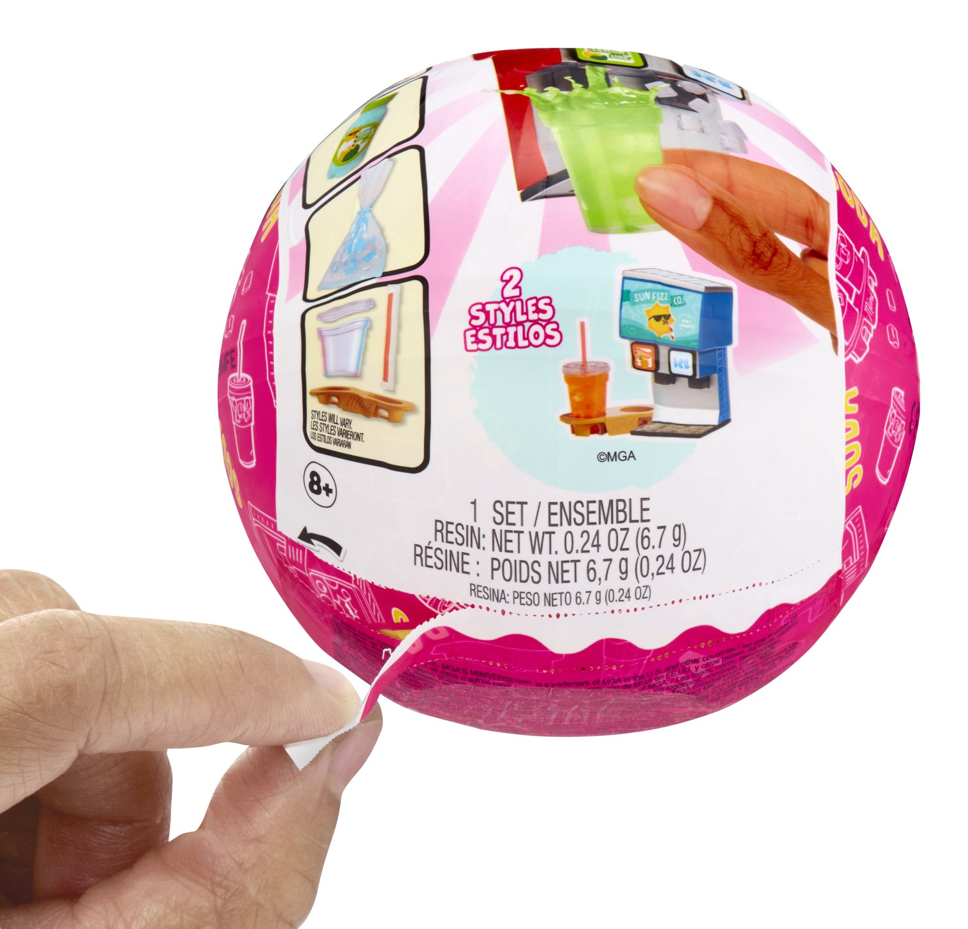 In elke bol zit één echt werkend mini-apparaat, plus accessoires en ingrediënten om je miniatuurdrankjes te maken! Elk pakket bevat 1 apparaat, 1 fles hars, 2 bekers om je hars in te gieten en unieke accessoires voor elk pakket. Elk apparaat heeft unieke, echt werkende functies die je Make It Mini™-ervaring naar een hoger niveau tillen. Je kunt bijvoorbeeld mini-ijsklontjes maken met het minisapapparaat en het minifrisdrankapparaat. Je kunt zelfs je miniboba’s sealen, net als bij echte bubble tea! Uit alle apparaten komt hars! Zodra de hars uit het apparaat is gekomen en je je minidrankjes hebt gemaakt, zet je de miniaturen in uv-licht (zoals de zon) tot de hars is uitgehard. Nadat de hars is uitgehard, heb je een verzamelvoorwerp om mee te spelen of aan iedereen te laten zien! Elk pakket is inclusief een paar bekerhouders (schotels voor de espressobollen) om je minidrankjes mee te showen.