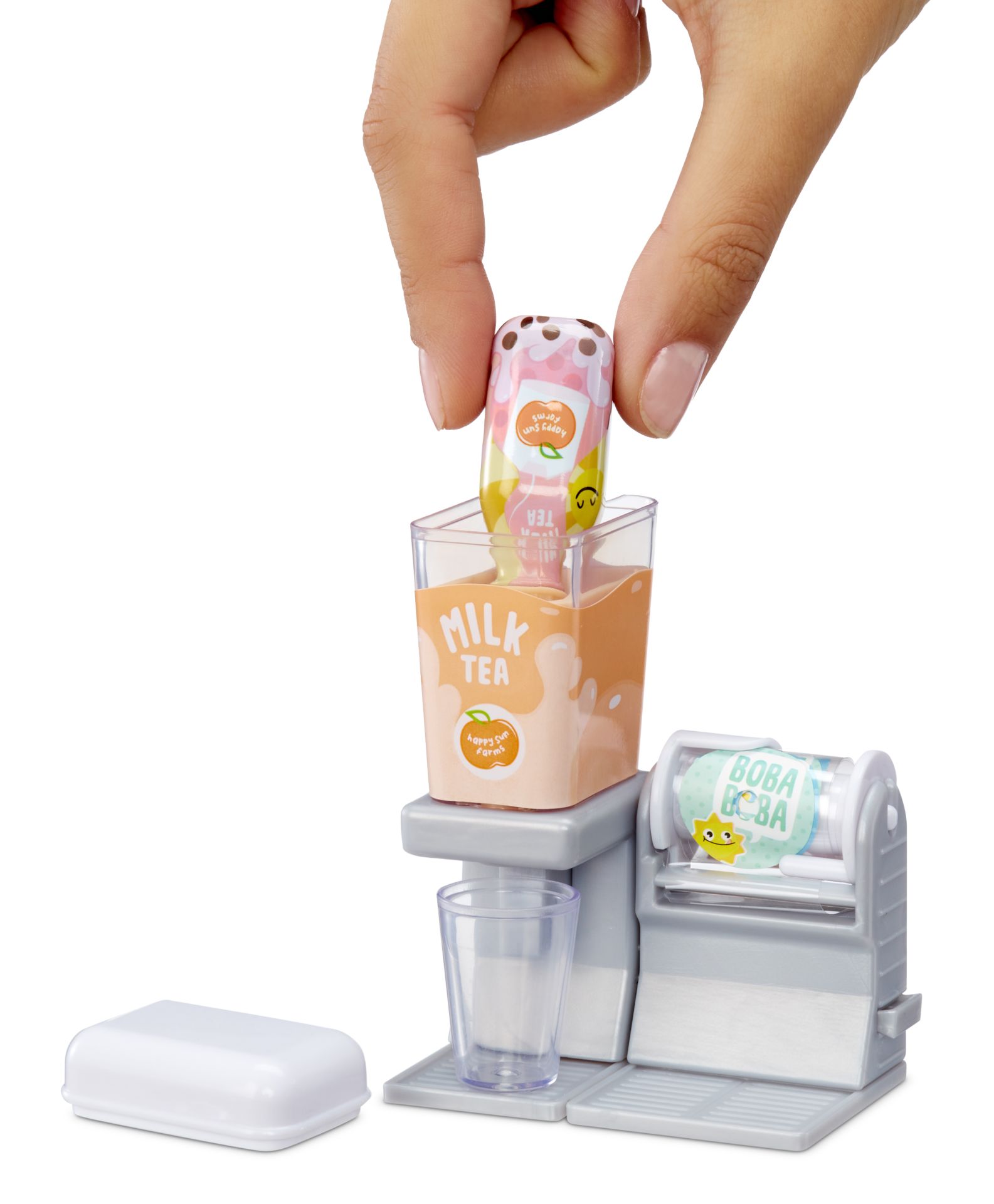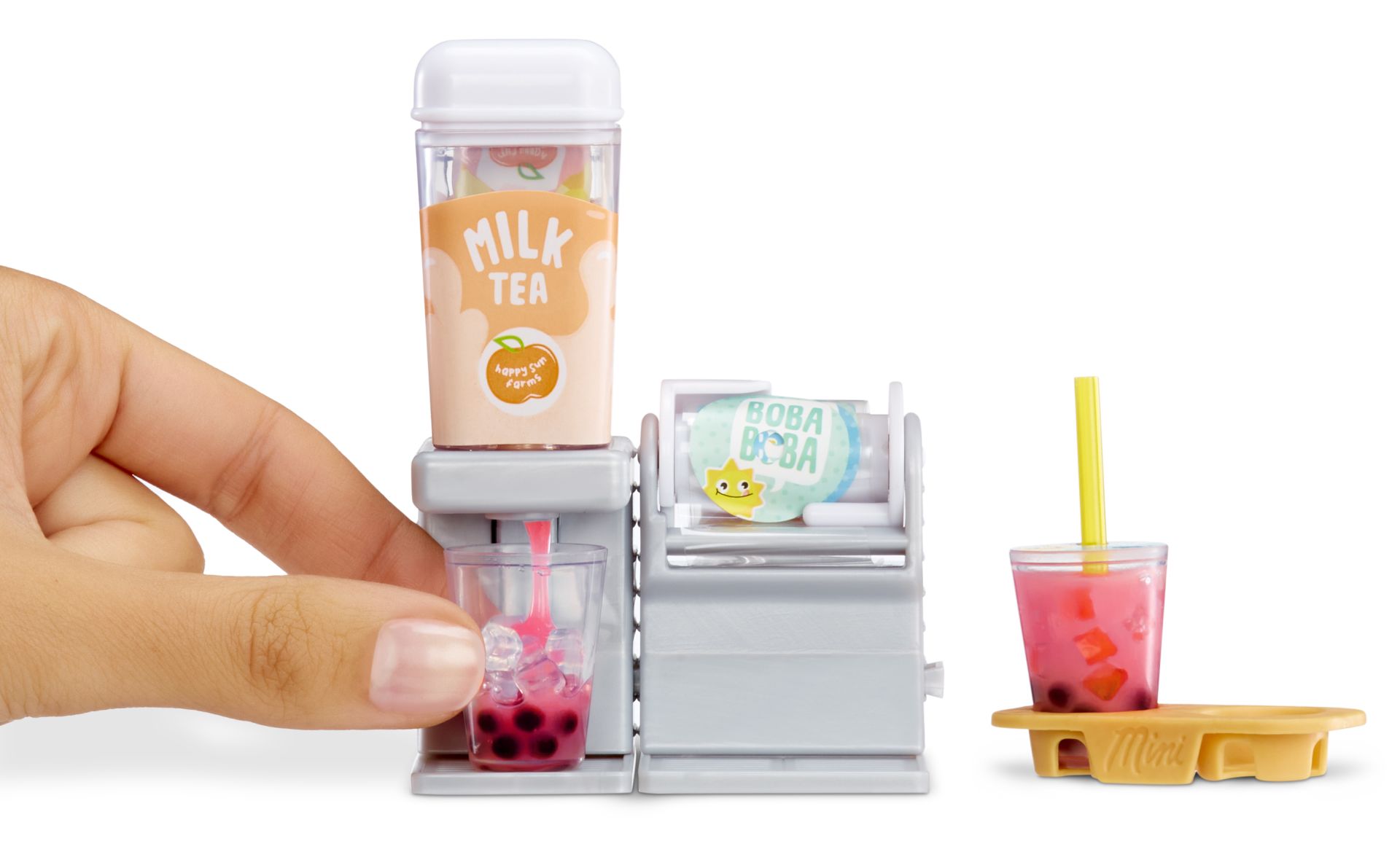 WERKT ECHT: elk apparaat heeft unieke, echt werkende functies die je Make It Mini™-ervaring naar een hoger niveau tillen. Je kunt bijvoorbeeld mini-ijsklontjes maken met het minisapapparaat en het minifrisdrankapparaat. Je kunt zelfs je miniboba’s sealen, net als bij echte bubble tea! Uit alle apparaten komt hars!