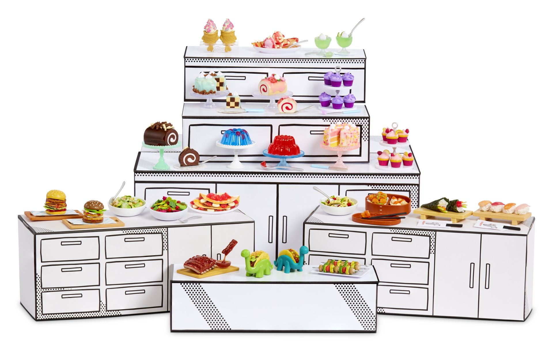 En er valt nog meer plezier te beleven! Niet alleen je voltooide miniatuur is leuk om te verzamelen. Van miniaturen van tacoschelpen of een saladedressing tot een drilpuddingvorm: er zijn meer dan 100 unieke replica-ingrediënten, -verpakkingen en -keukenaccessoires in serie 3 van Make It Mini Food™ Restaurant om te verzamelen en om je eigen mini-verzamelvoorwerpen te maken.