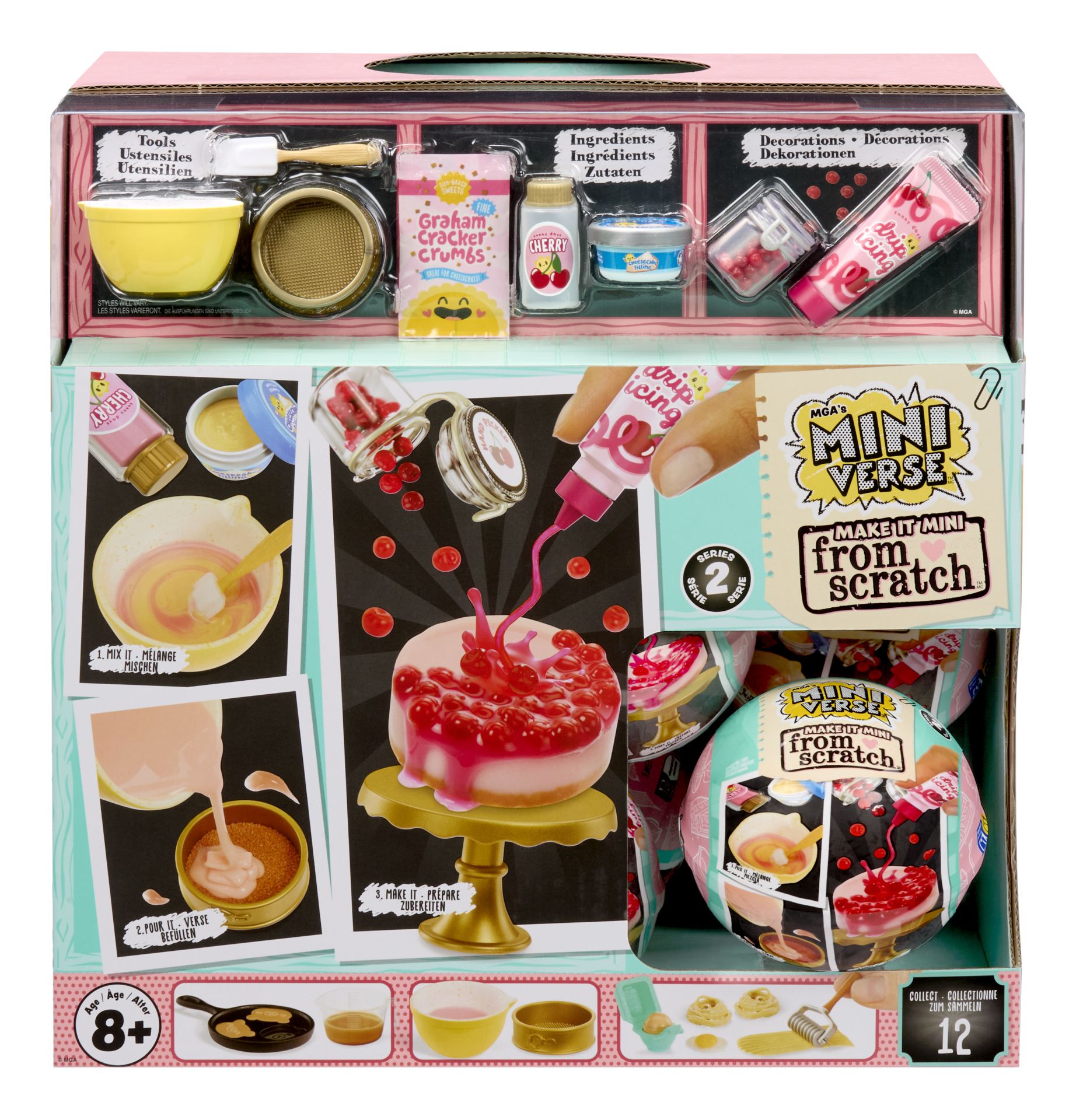 MAKE IT MINI FROM SCRATCH™ SERIE 2: bereid je voor om op te kloppen, te rollen en laagjes te maken met Make It Mini From Scratch™ van MGA's Miniverse™! Combineer bakplezier met een hele wereld aan miniaturen om te verzamelen! Van taarten en stokbroden tot pannenkoeken en pasta, deze serie geeft een overheerlijke twist aan je zoete minicreaties. MGA's Miniverse™ zijn de ORIGINELE miniatuurverzamelvoorwerpen die je kunt MAKEN, HARD LATEN WORDEN en LATEN ZIEN!