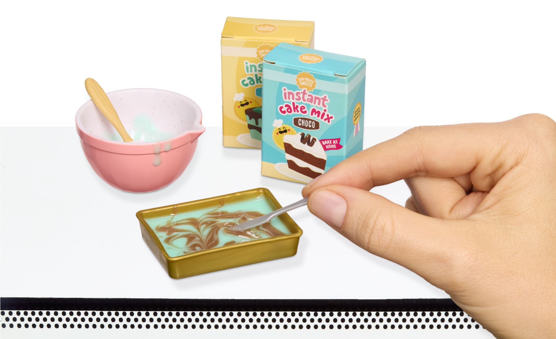 Geniet van bakplezier bij elke stap! Meng, maak laagjes, rol uit en stel je miniaturen samen met behulp van de inbegrepen ‘onbewerkte ingrediënten’. Van pastadeeg uitsteken tot de lagen van een cheesecake maken, het draait allemaal om het proces. Vergelijk je ingrediënten met de inbegrepen verzamelgids om te weten welke mini je hebt gekregen en volg de aanwijzingen van de ‘receptenkaart’ op de achterkant om je creatie te maken.