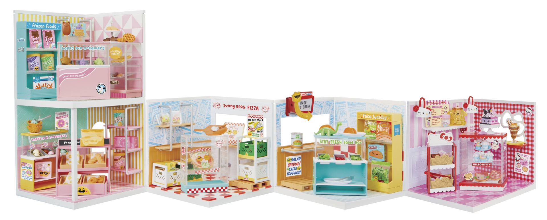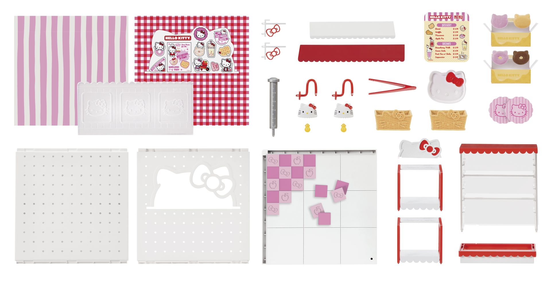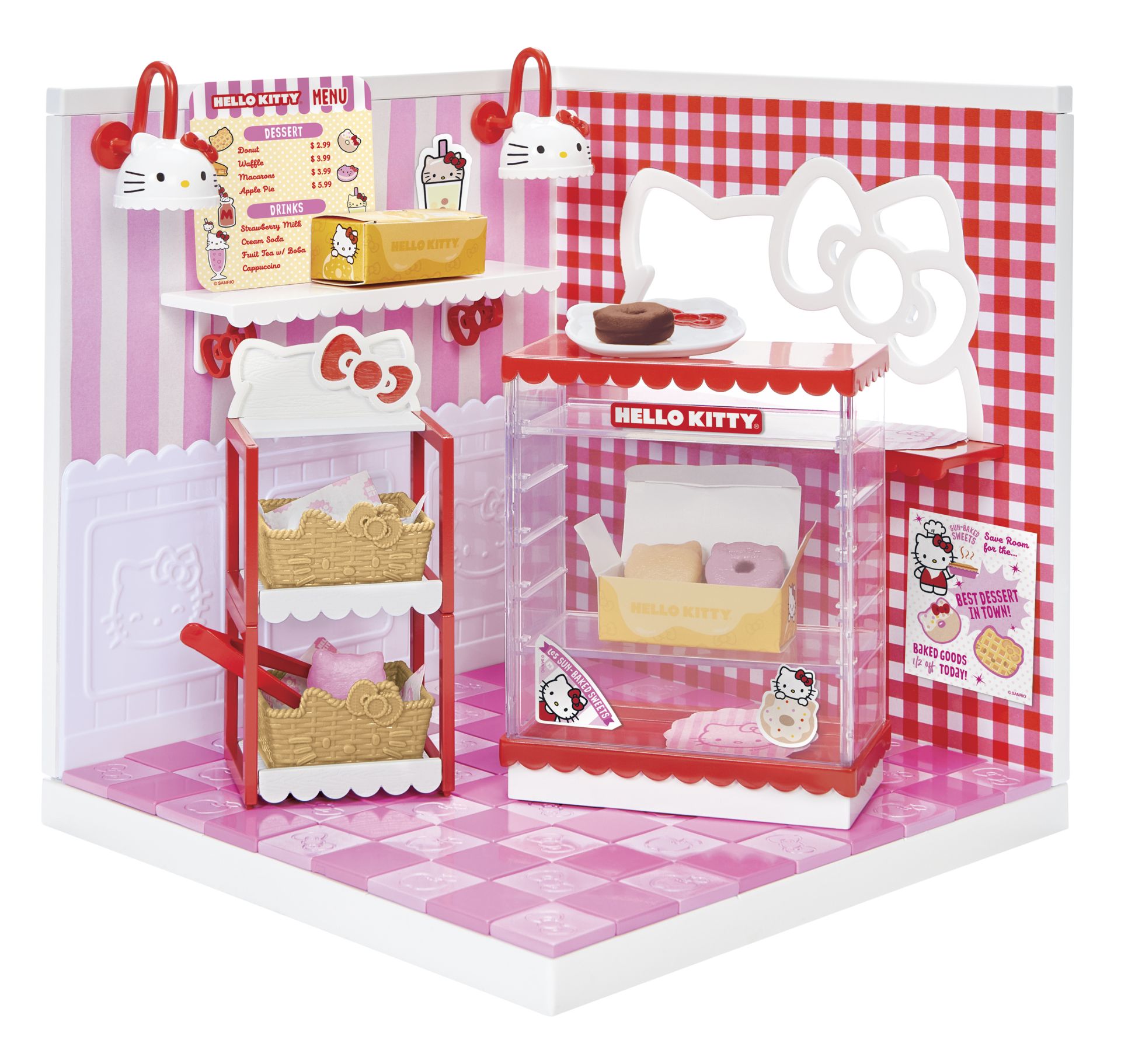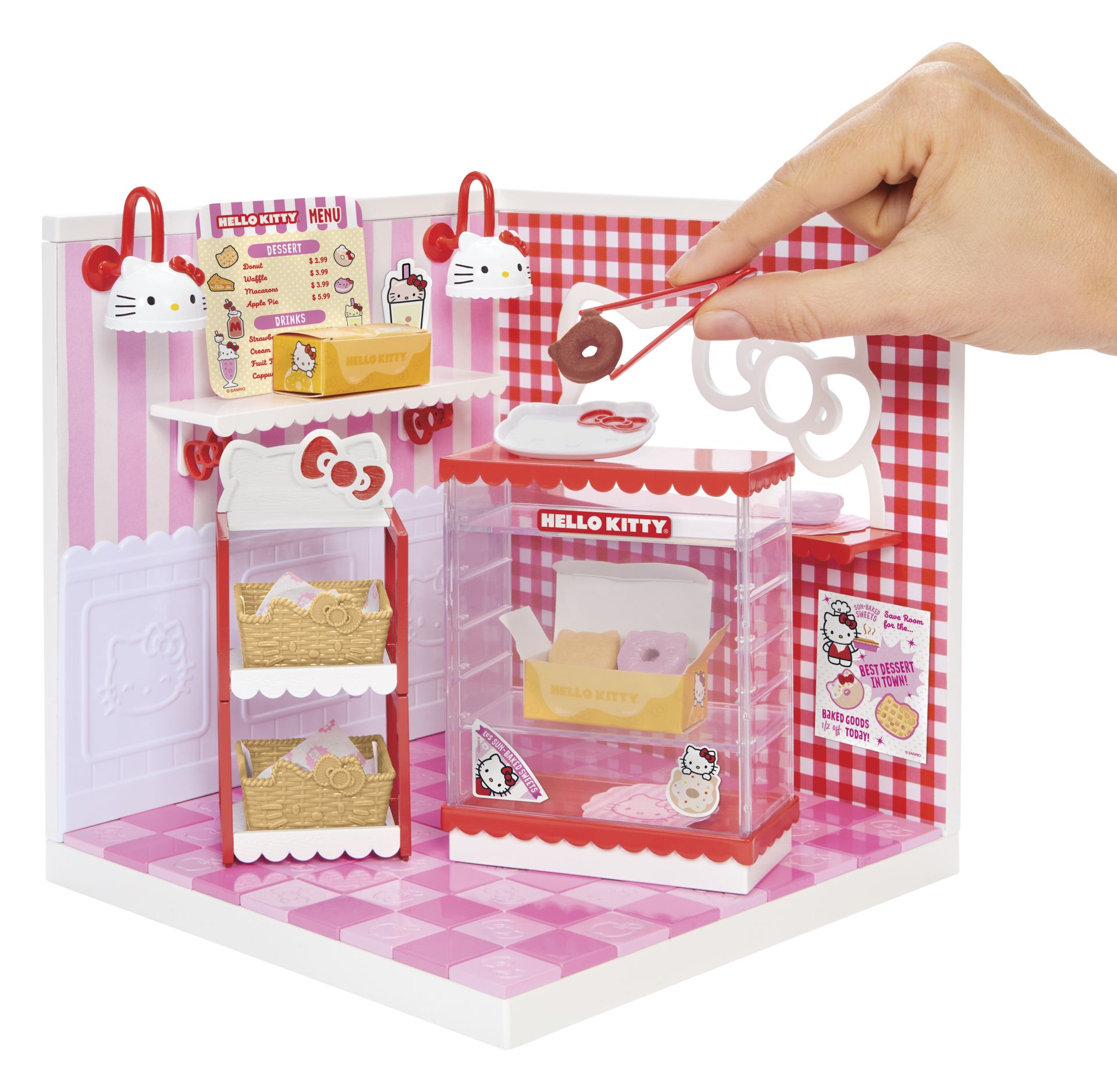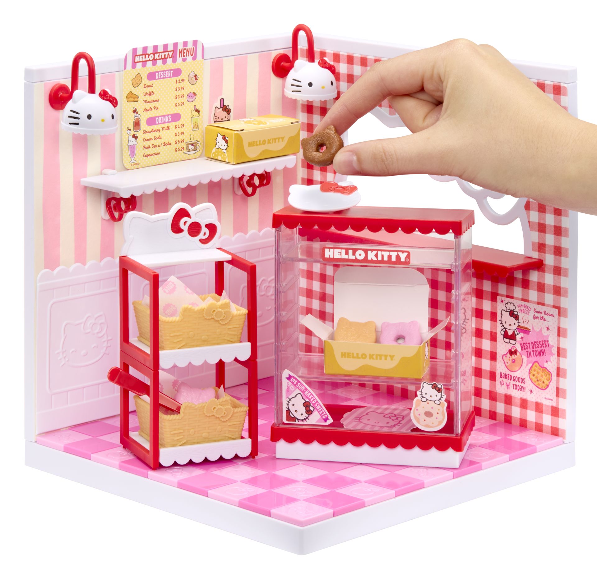 INRICHTEN: decoreer je ruimte met de superleuke accessoires en ingrediënten die zijn inbegrepen! Elk pakket bevat een exclusief meubelstuk met Hello Kitty-thema, ingrediënten om op je schappen te zetten en Hello Kitty-ministickers!
