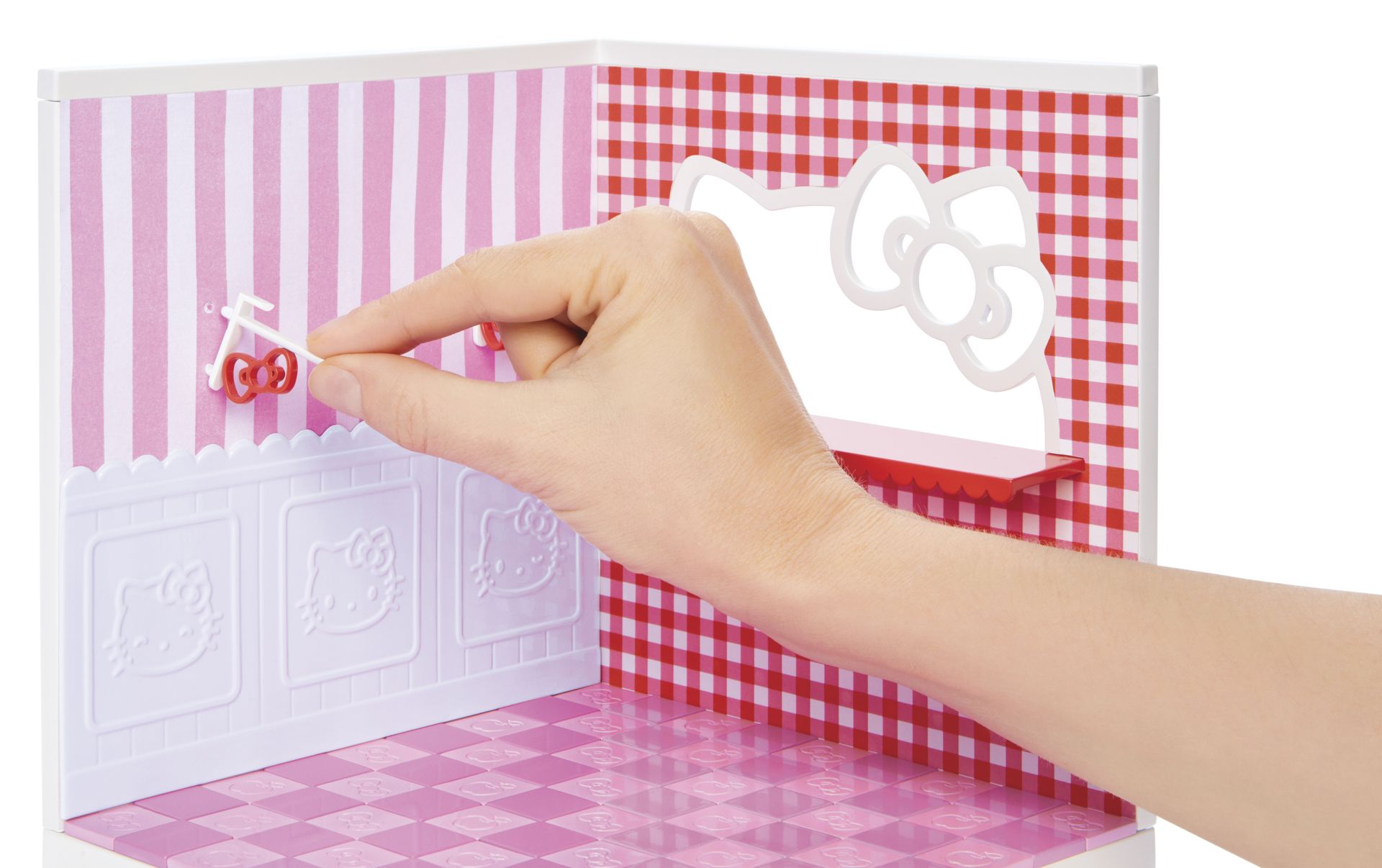 Personaliseer je ruimte en pas hem helemaal aan je eigen wensen aan! Verwissel behang, herschik tegels en mix en match materialen. Er zijn eindeloos veel manieren om jouw ruimte te ontwerpen en aan te passen! Decoreer je ruimte met de superleuke accessoires en ingrediënten die zijn inbegrepen! Elk pakket bevat een exclusief meubelstuk met Hello Kitty-thema, ingrediënten om op je schappen te zetten en Hello Kitty-ministickers!