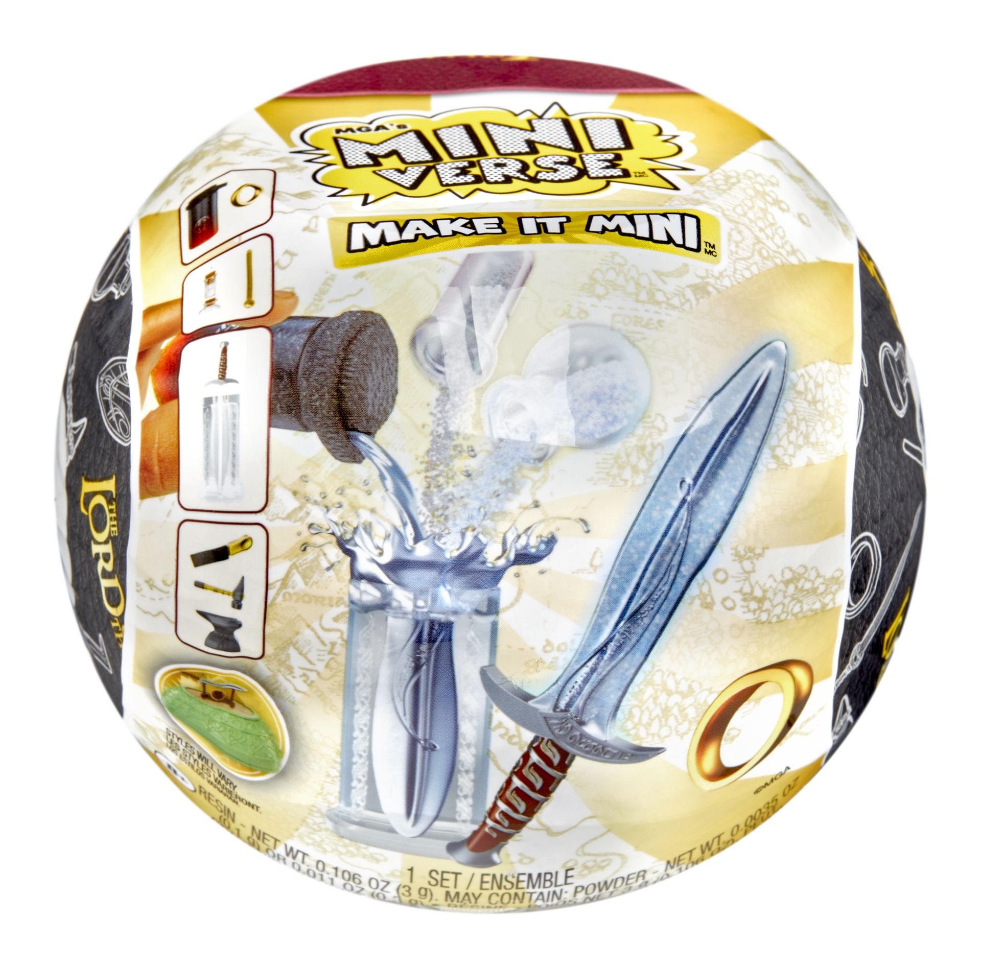Elke bol bevat realistische mini-items en -accessoires om je eigen miniaturen te maken van je favoriete voorwerpen uit de The Lord of the Rings™-films! Van de Elven Dagger™ tot Narsil™ en Sting™! Elke verpakking is een VERRASSING, dus je weet pas na het uitpakken welke miniatuur erin zit! Vergelijk de inhoud van je verpakking met de inbegrepen verzamelgids, zodat je ziet welke mini je hebt gekregen. Volg de aanwijzingen op de instructiekaart op de achterkant van de verzamelaarsgids om je mini te maken. Zodra je je miniatuur hebt gemaakt, zet je je mini in uv-licht (zoals de zon) tot de hars is uitgehard. Nu heb je een Make It Mini™ The Lord of the Rings™-verzamelvoorwerp dat je aan iedereen kunt laten zien!