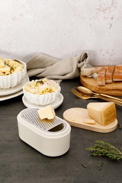 Microplane Container Rasp Cashmere/Bamboe - Rasp RVS en Kunststof Opvangcontainer