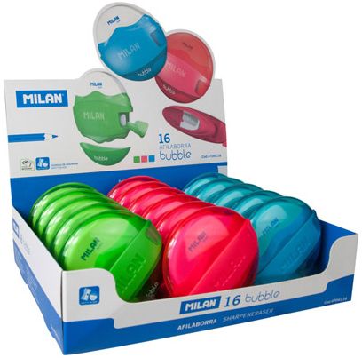 Milan Potloodslijper en Gom - Bubble Assorti - Prijs per Stuk