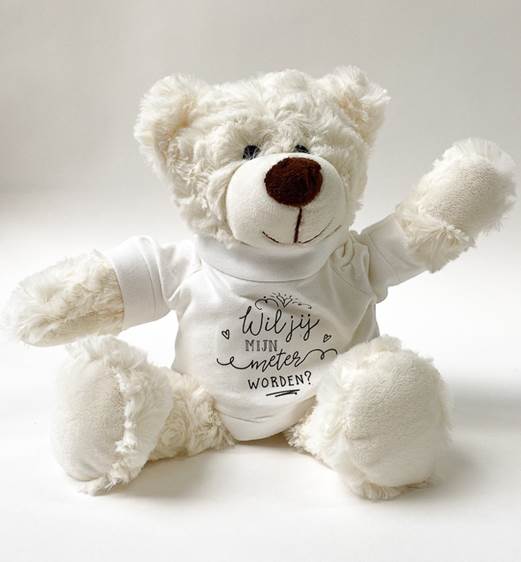 Minimou Knuffel Beer Wit - Wil jij mijn meter worden?