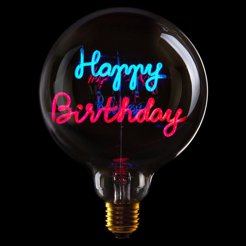 MITB Gloeilamp Happy Birthday G125 - E27 - 2W - Blauw/Rood - Staand