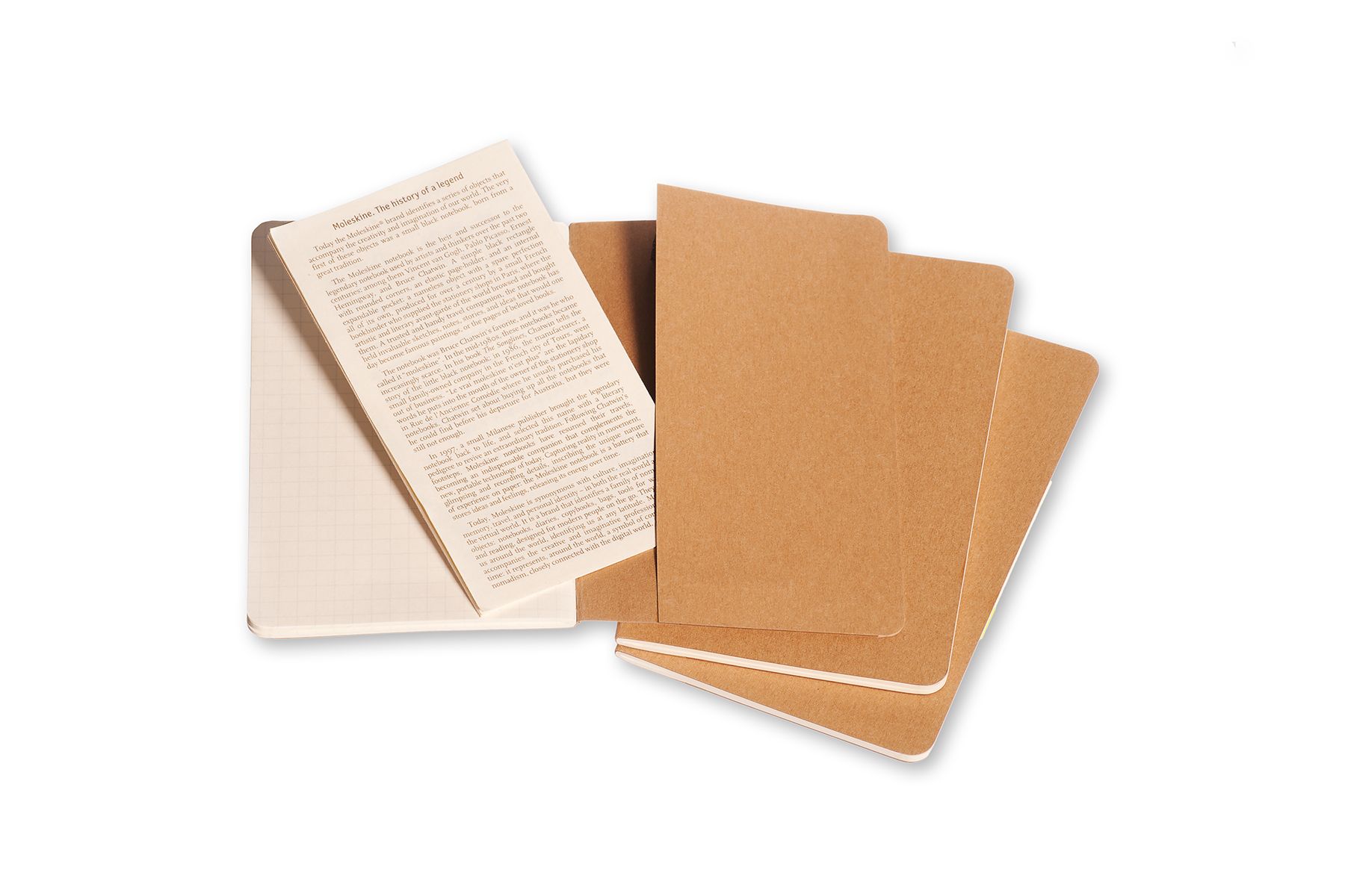 Moleskine Notebook Schrift Pocket Kraft - Geruit - 3 Stuks