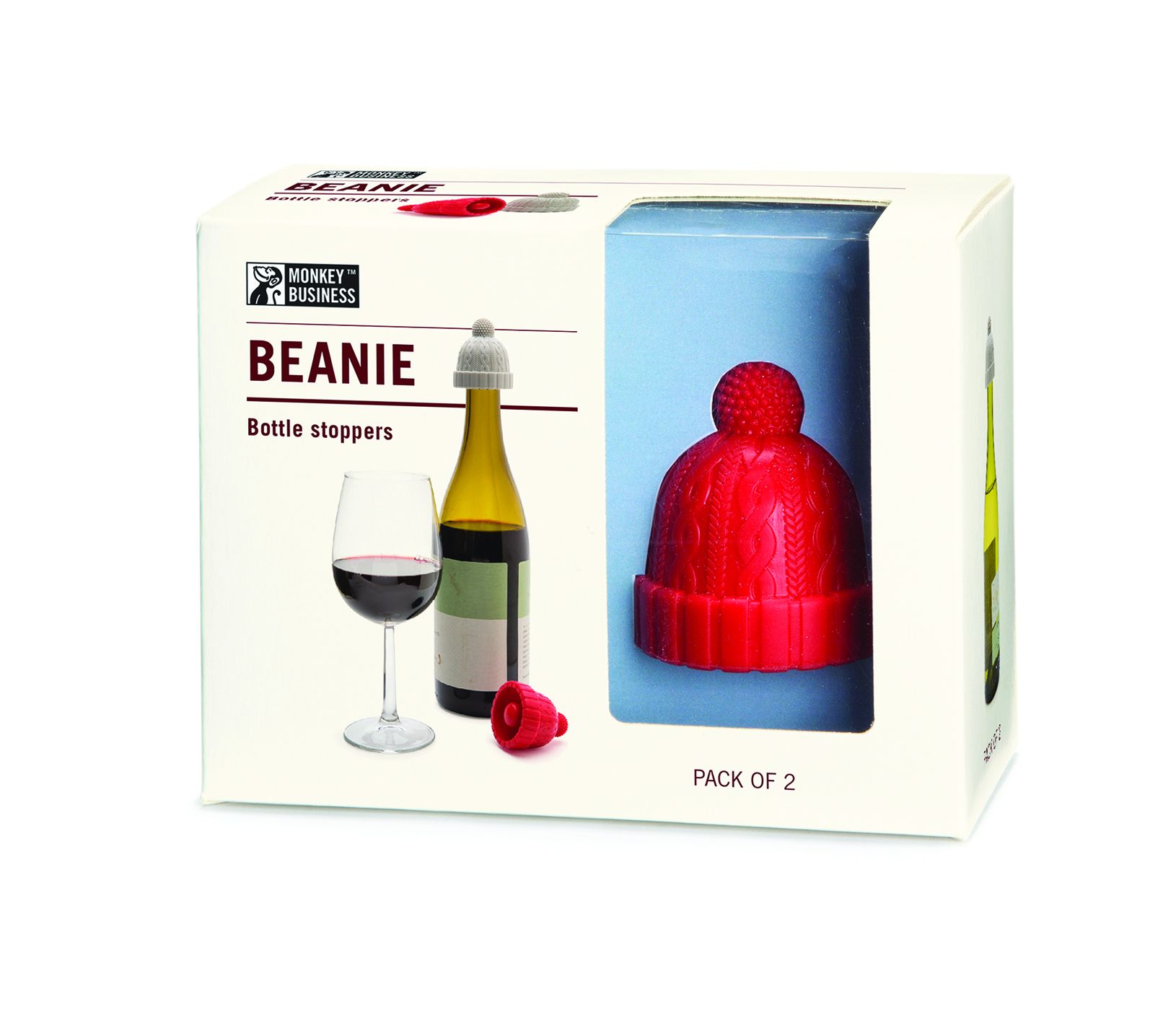 Monkey Business Flessenstop Beanie Set 2 stuks - Rood & Grijs
