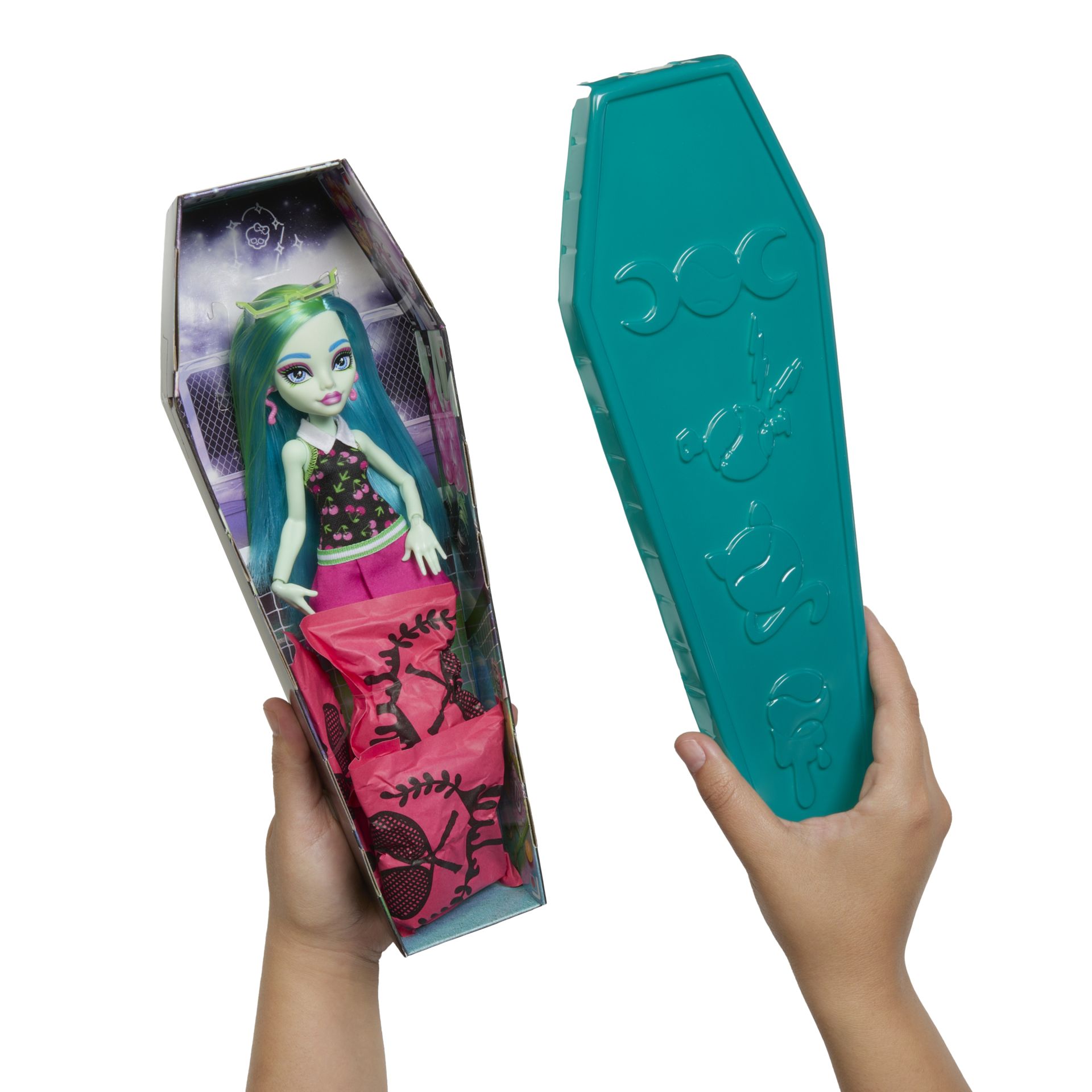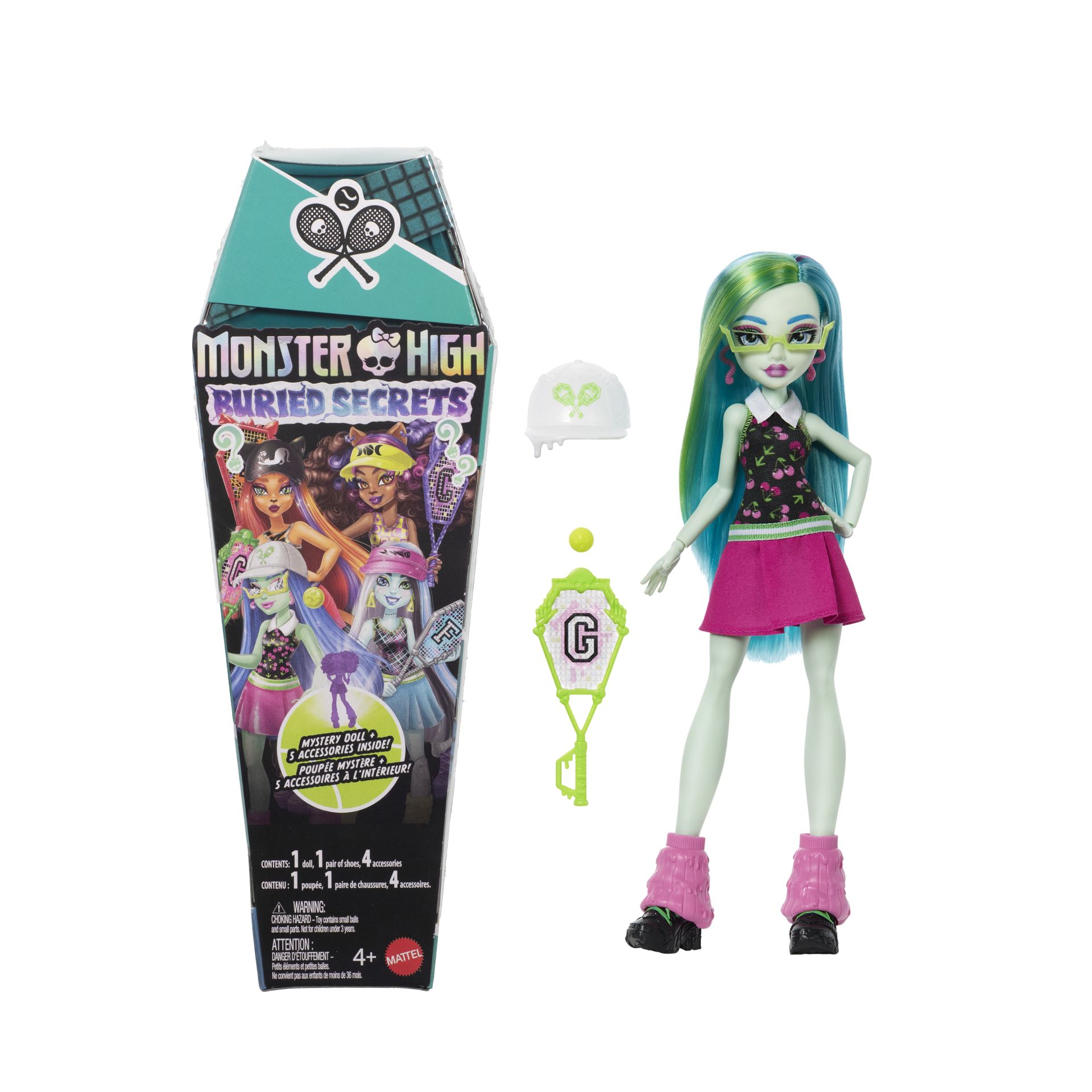 Maak kennis met Geheimen Onder de Grond: pak een sarcofaag uit om een Monster High pop te onthullen! Elke griezel is klaar voor een Spookachtig Slaapfeestje met 5 accessoires, waaronder een speelgoedhuisdier.