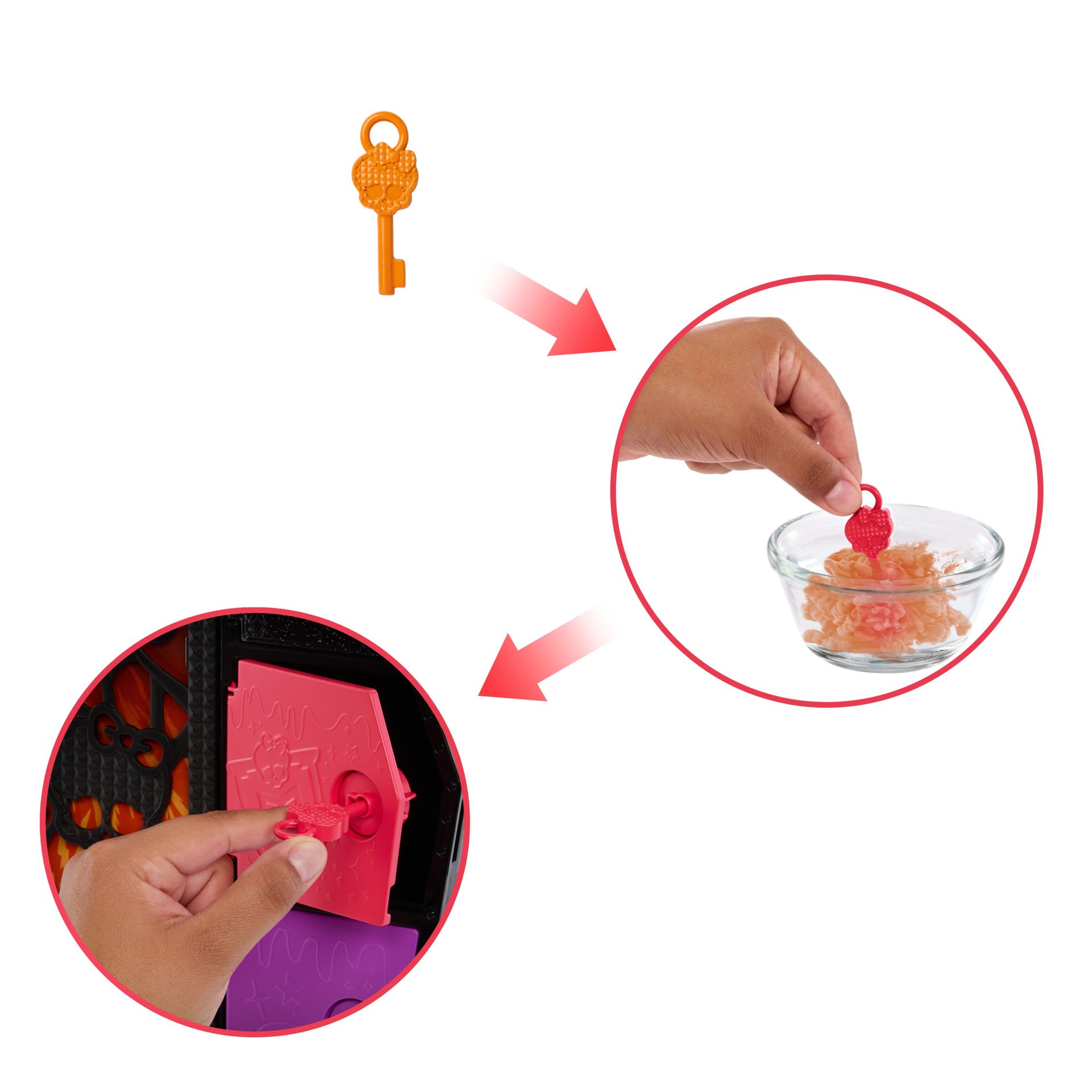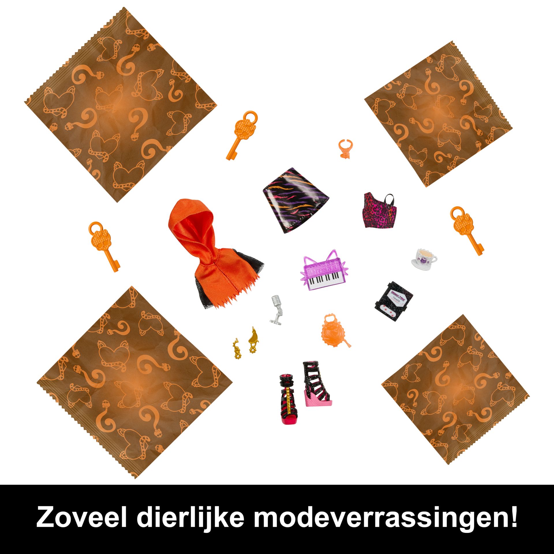 Skulltimate Secrets Toralei Stripe heeft meer dan 19 fel gekleurde verrassingen bij zich die de fantasie prikkelen, van een hoodie en een kop thee tot een opnamemicrofoon en een keyboard. Je kunt wel 125 verschillende looks verzinnen!