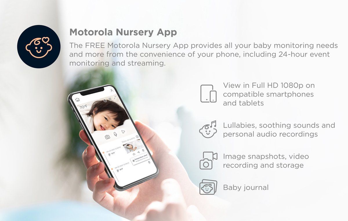 uit jouw Motorola Baby Monitor. De app biedt de mogelijkheid je baby te