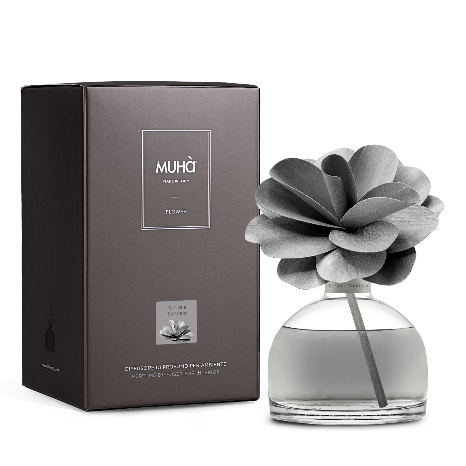 Muhà Geurdiffuser Flower Dark Grey 200ml - Tonka & Sandalwood