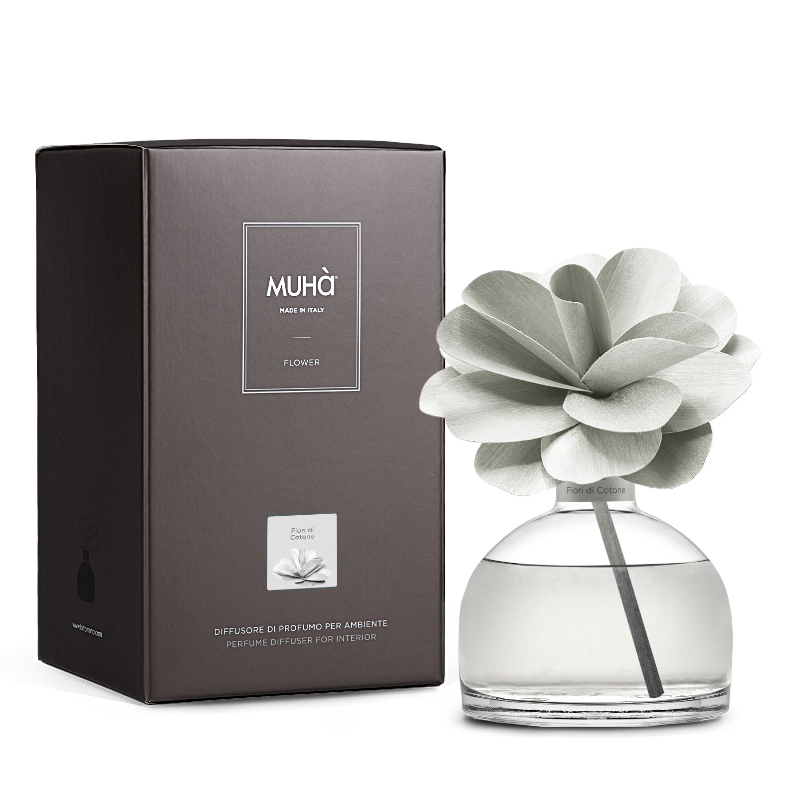 Muhà Geurdiffuser Flower Light Grey 200ml - Cotton Flowers