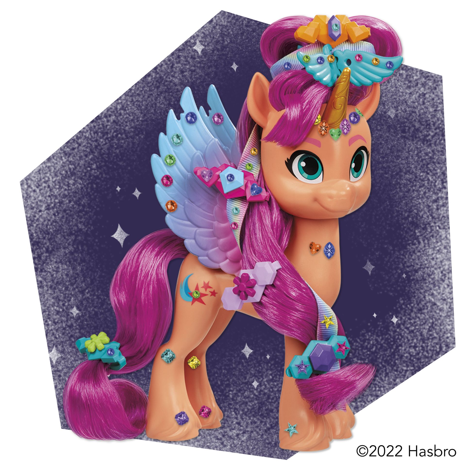 Geef Sunny's haar een unieke look met de bedeltjes, speldjes en stylingaccessoires, en versier haar met edelsteenstickers! Fans van vroeger en nu kunnen allerlei avonturen verzinnen met het speelgoed geïnspireerd op de film en serie van My Little Pony. Perfect als geschenk voor een feest of een verjaardag voor kinderen vanaf 5 jaar! My Little Pony en alle gerelateerde personages zijn handelsmerken van Hasbro.