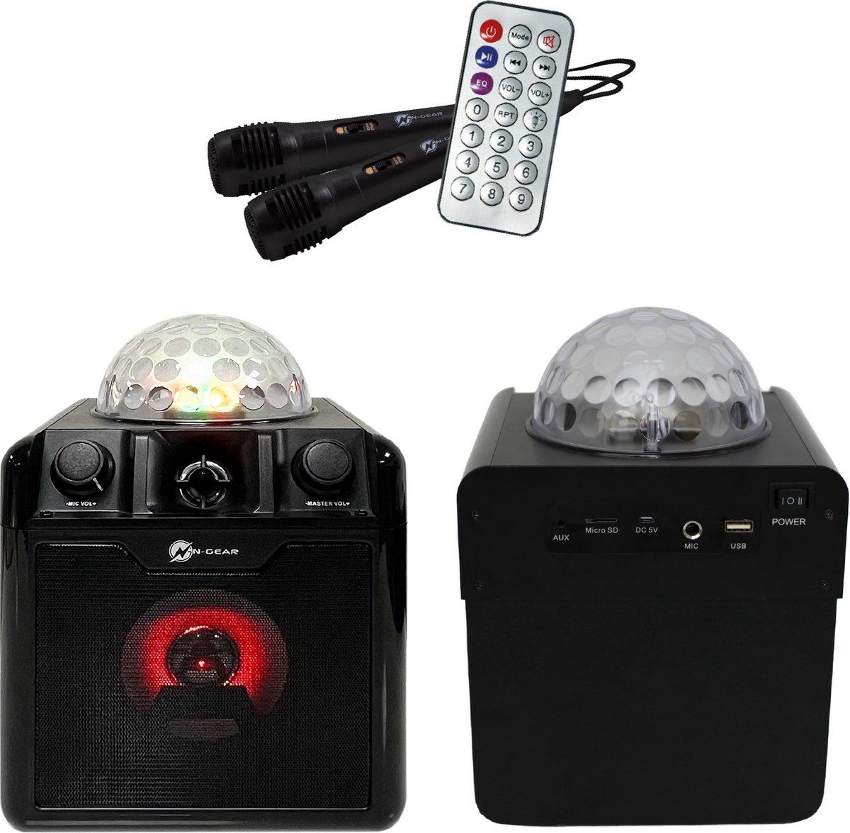 N-GEAR Disco Block 410 Bluetooth Speaker-Karaoke set 2 Microfoons met Verlichting Zwart