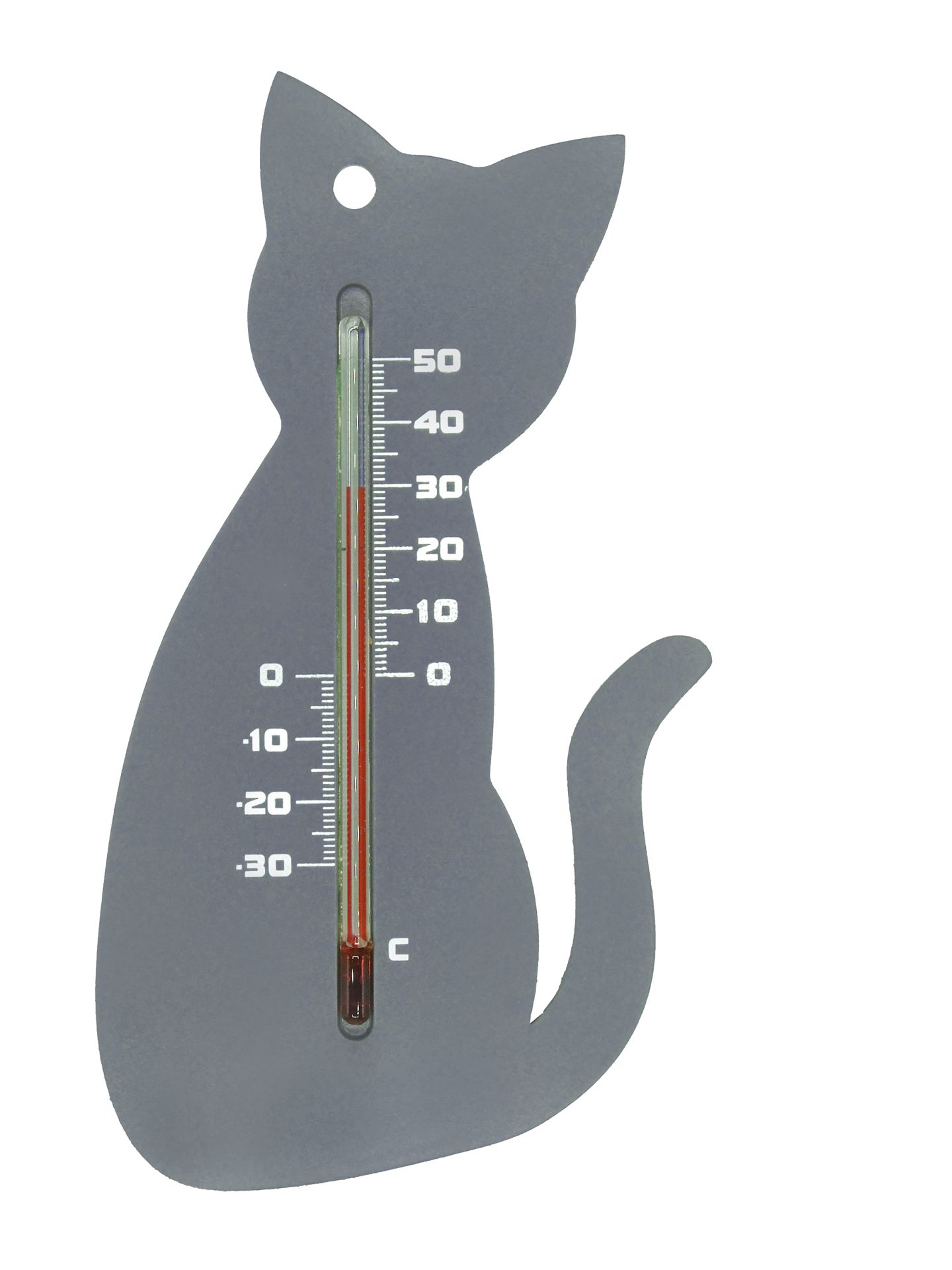 NATURE Buitenmuurthermometer Kat Grijs - 15x9.5x0.3 cm