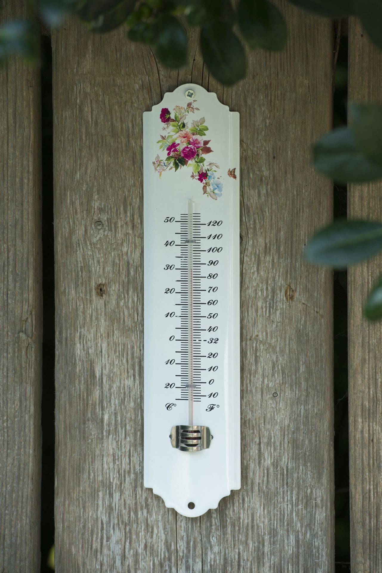 NATURE Buitenmuurthermometer Wit Bloemen Kelvin 16 - Metaal - 30x6.5x1 cm