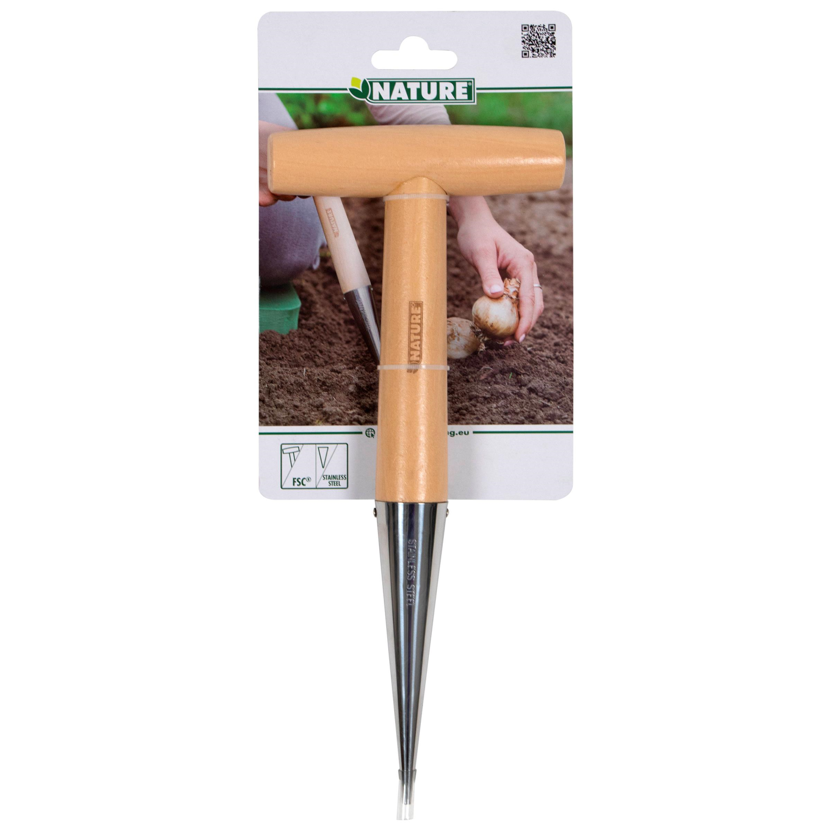 NATURE Pootstok met Houten Kruksteel