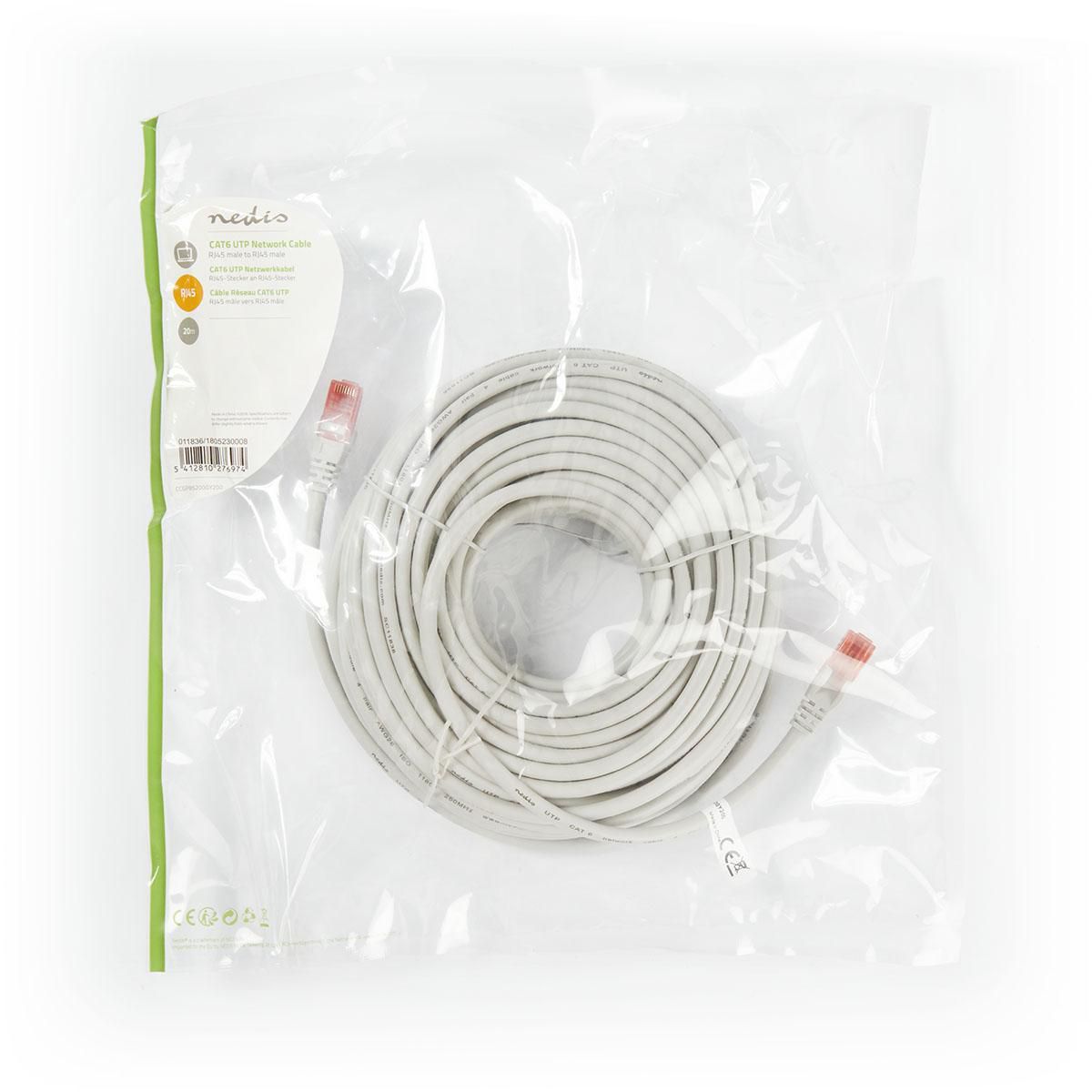 Nedis CAT6 UTP netwerkkabel RJ45 (8/8) MALE 20 meter grijs