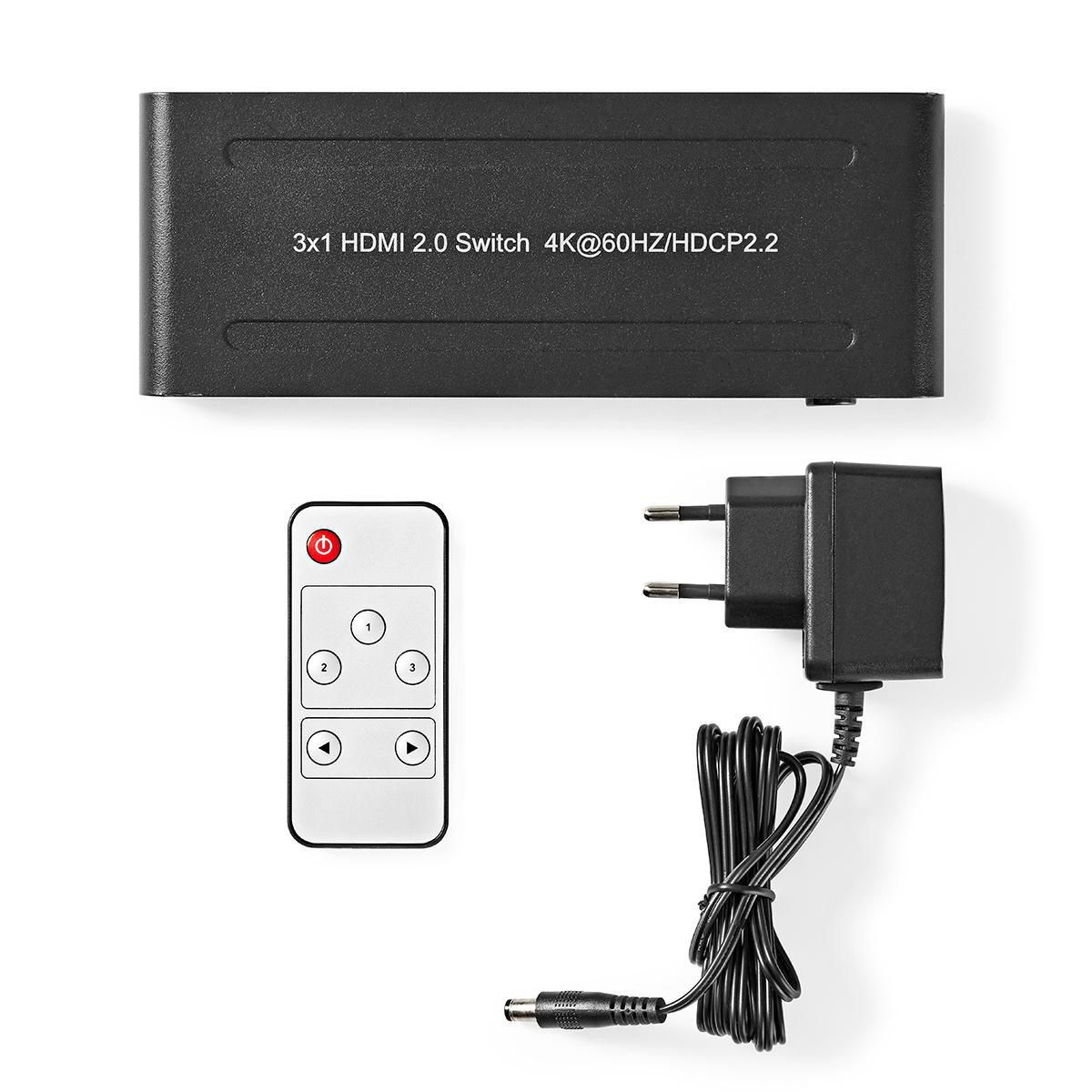 Nedis HDMI Switch 3x Input - 3x Output 4k 60Hz Afstandbestuurbaar Antraciet