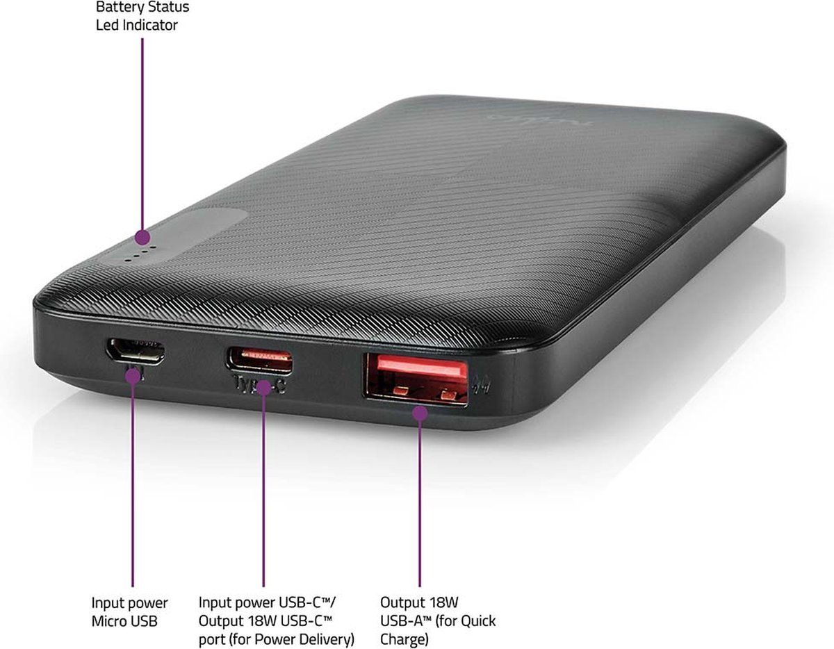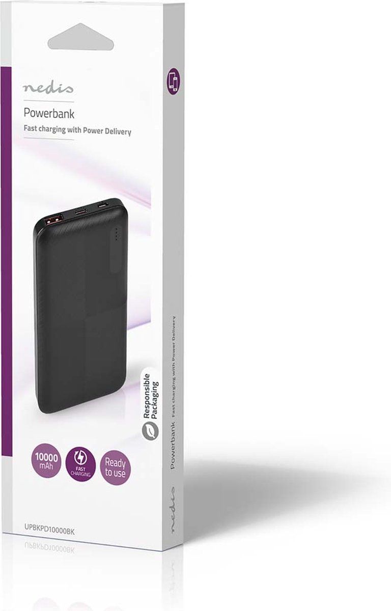 Nedis Powerbank 10000 mAh,3.0 A, 1x USB-A en 1x USB-C, Lithium-Polymeer