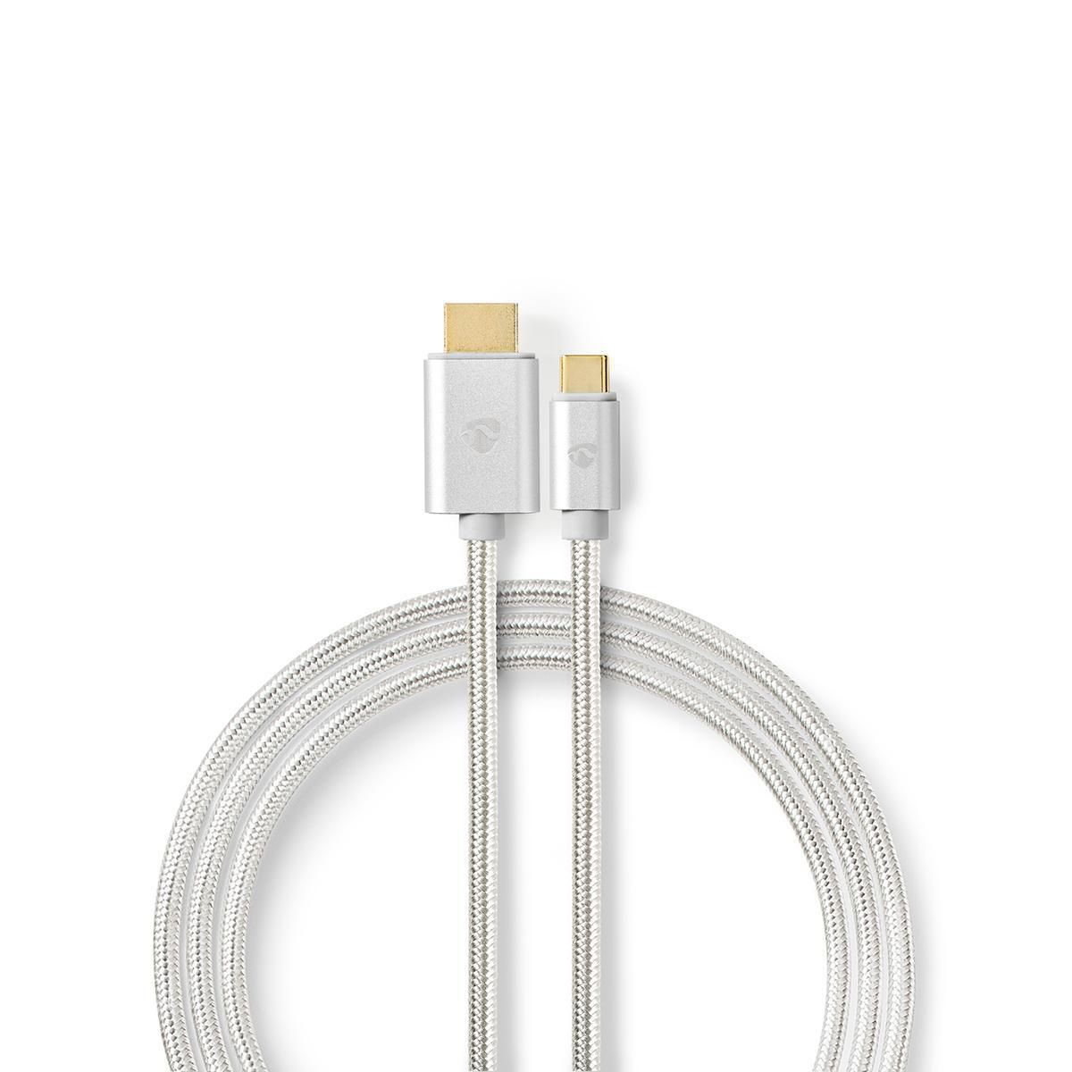 Nedis USB-C male naar HDMI male 2meter 4K 60Hz gold plated nylon kabel, alu kleur