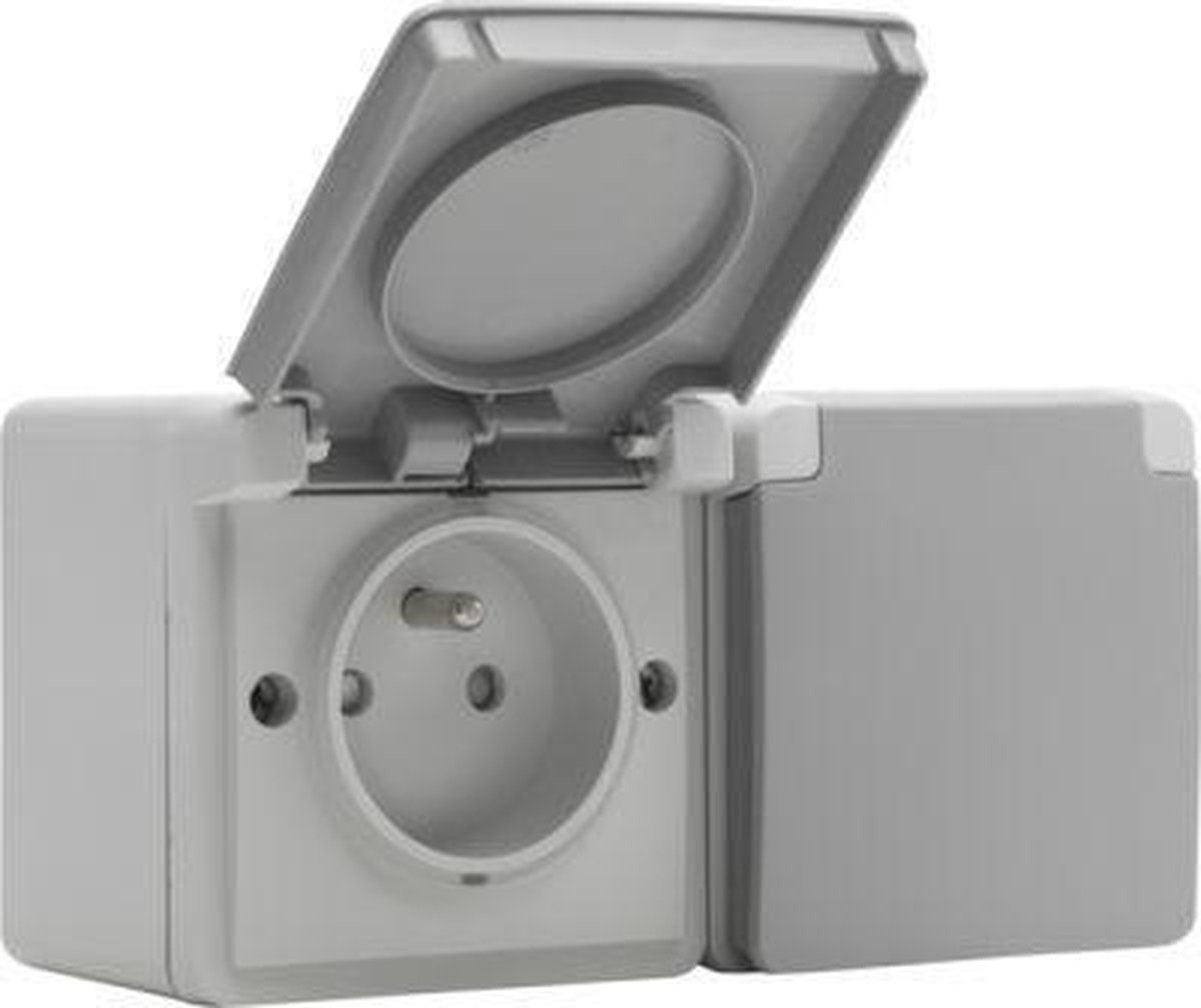 Niko Hydro Dubbele Wandcontactdoos 16A Horizontaal 1x2 Ingangen - Grijs