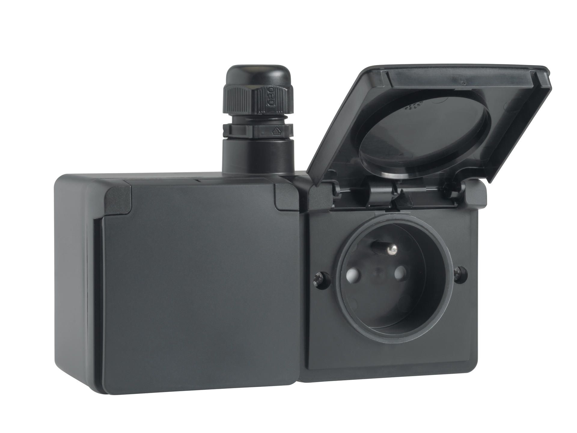 Niko Hydro Dubbele Wandcontactdoos 16A Horizontaal - Zwart