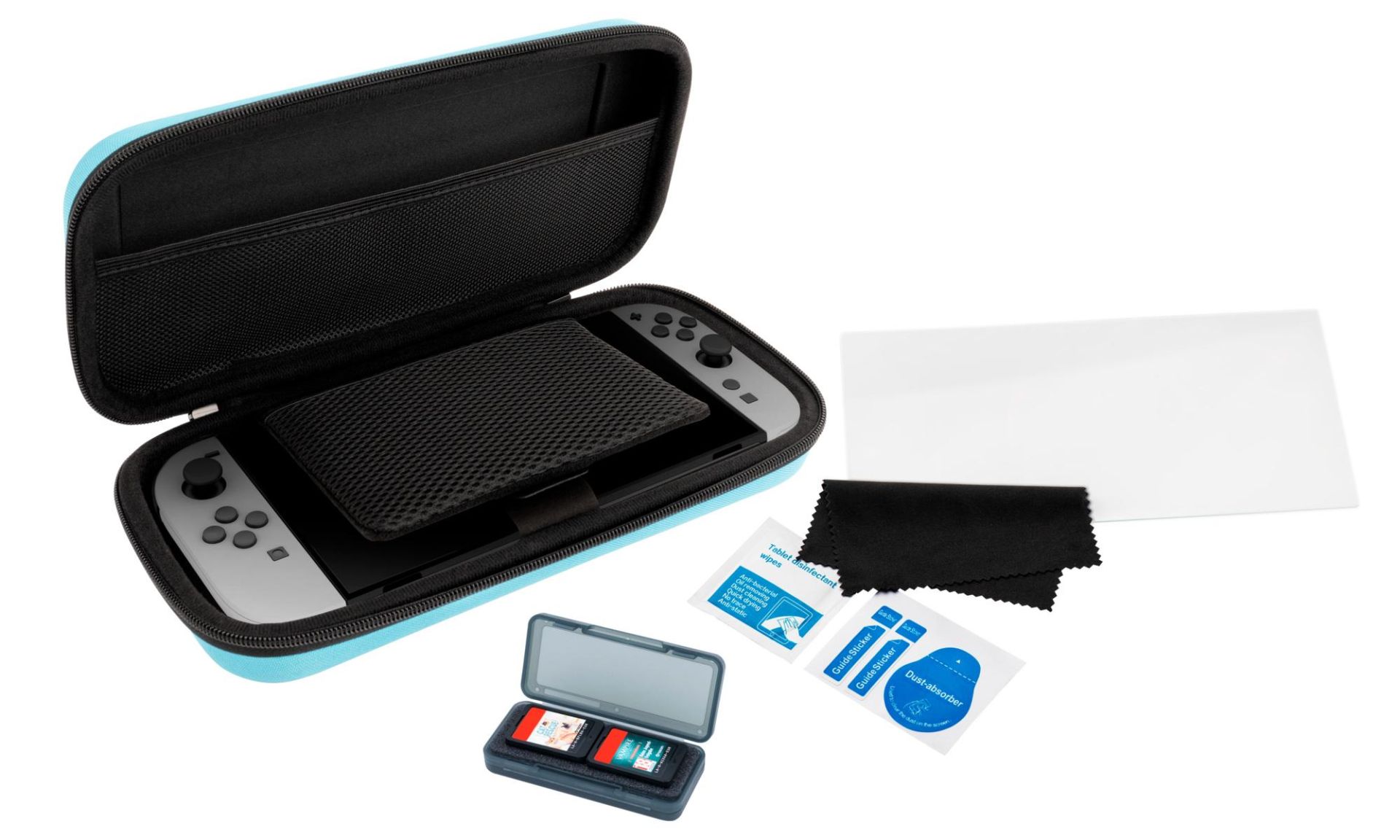 Nintendo Switch 2 Opbergtas Pouch+Tempered Glass+Game Cases Blue