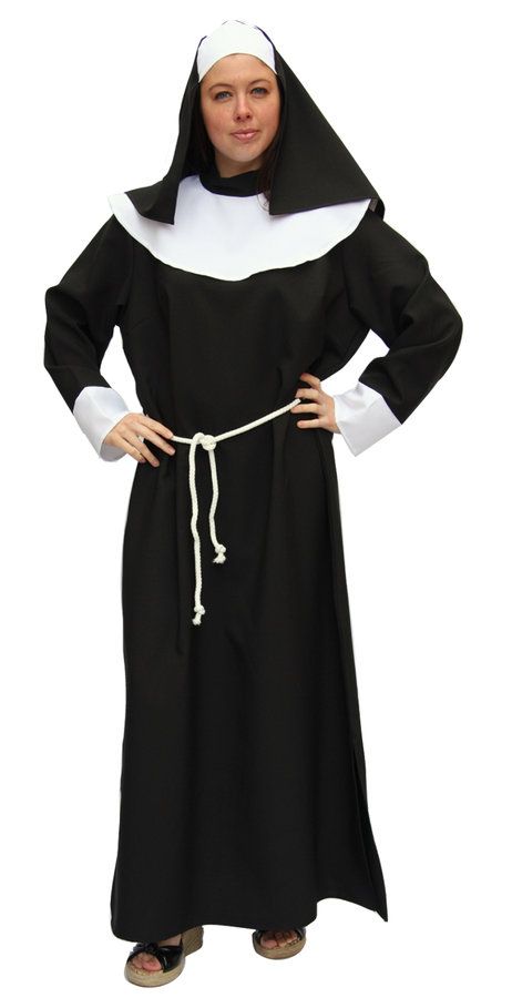 Non, Kleed , Zwart Lang Kleed met Kapje Witte Manchetten , Bavette , Koord , 46