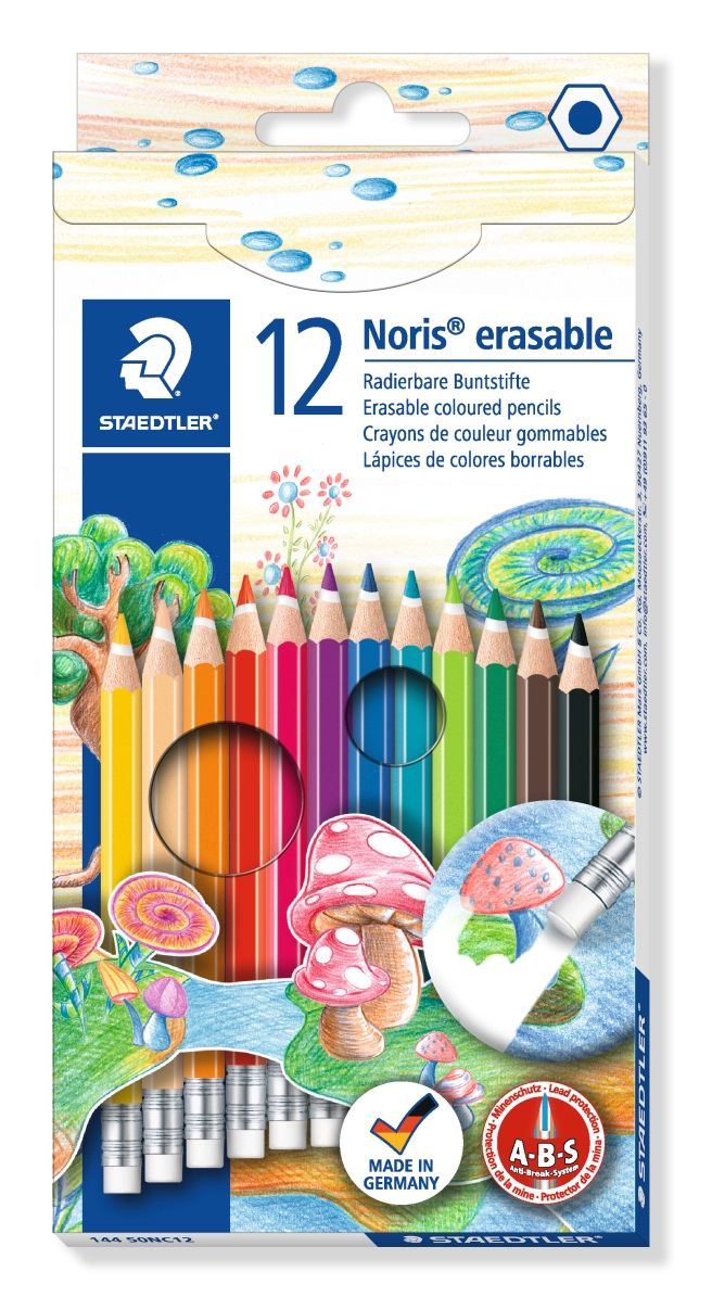 Noris Erasable Kleurpotloden met Gomtop 12 stuks - Karton Etui