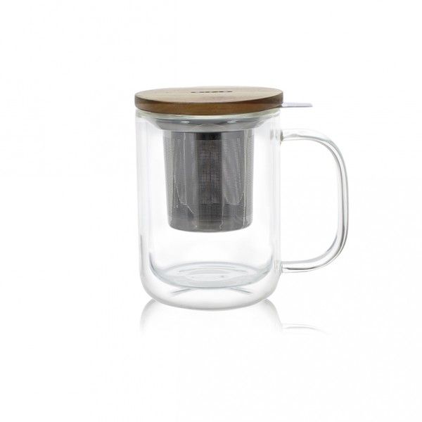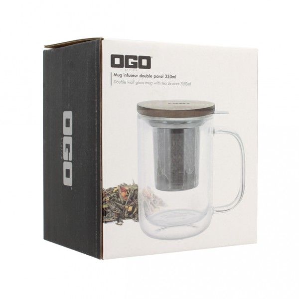 OGO The & Cafe Theemok 350ml met Inox Inzet en Acacia Deksel - Dubbelwandig Glas