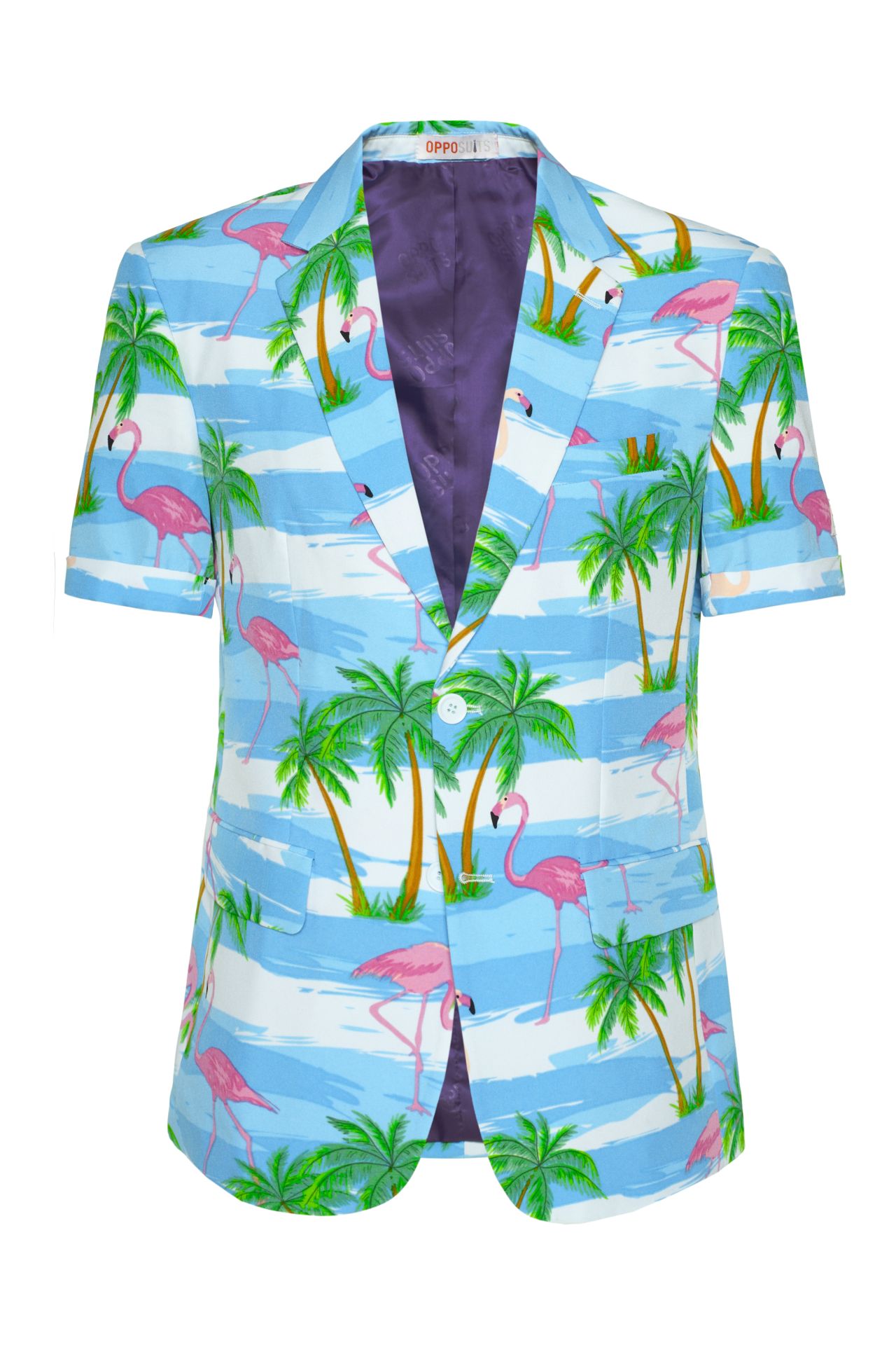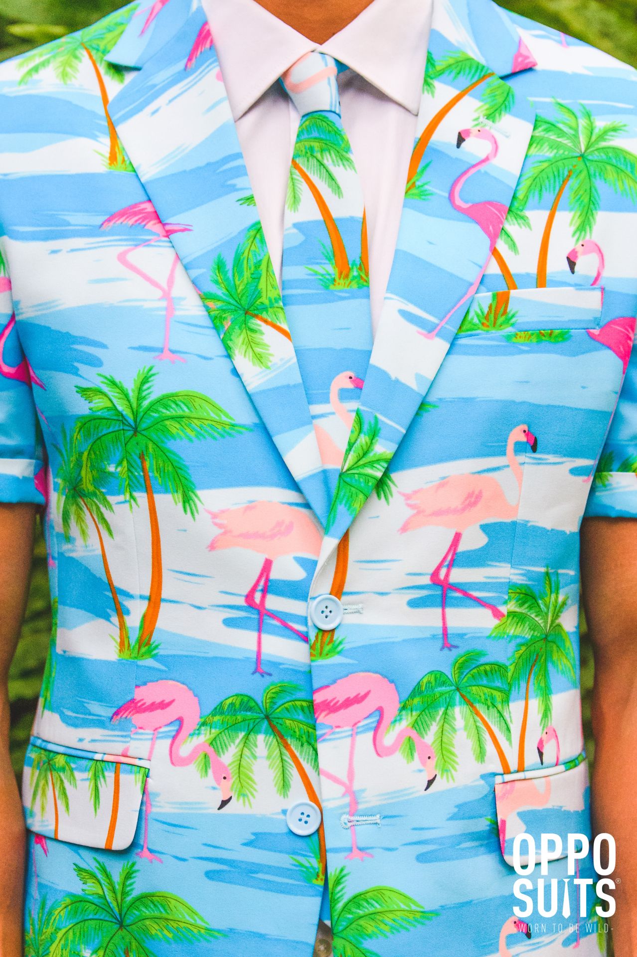 OppoSuits Verkleedpak Men's Summer Flaminguy Maat 46 - Short +Vest Korte Mouw + Das