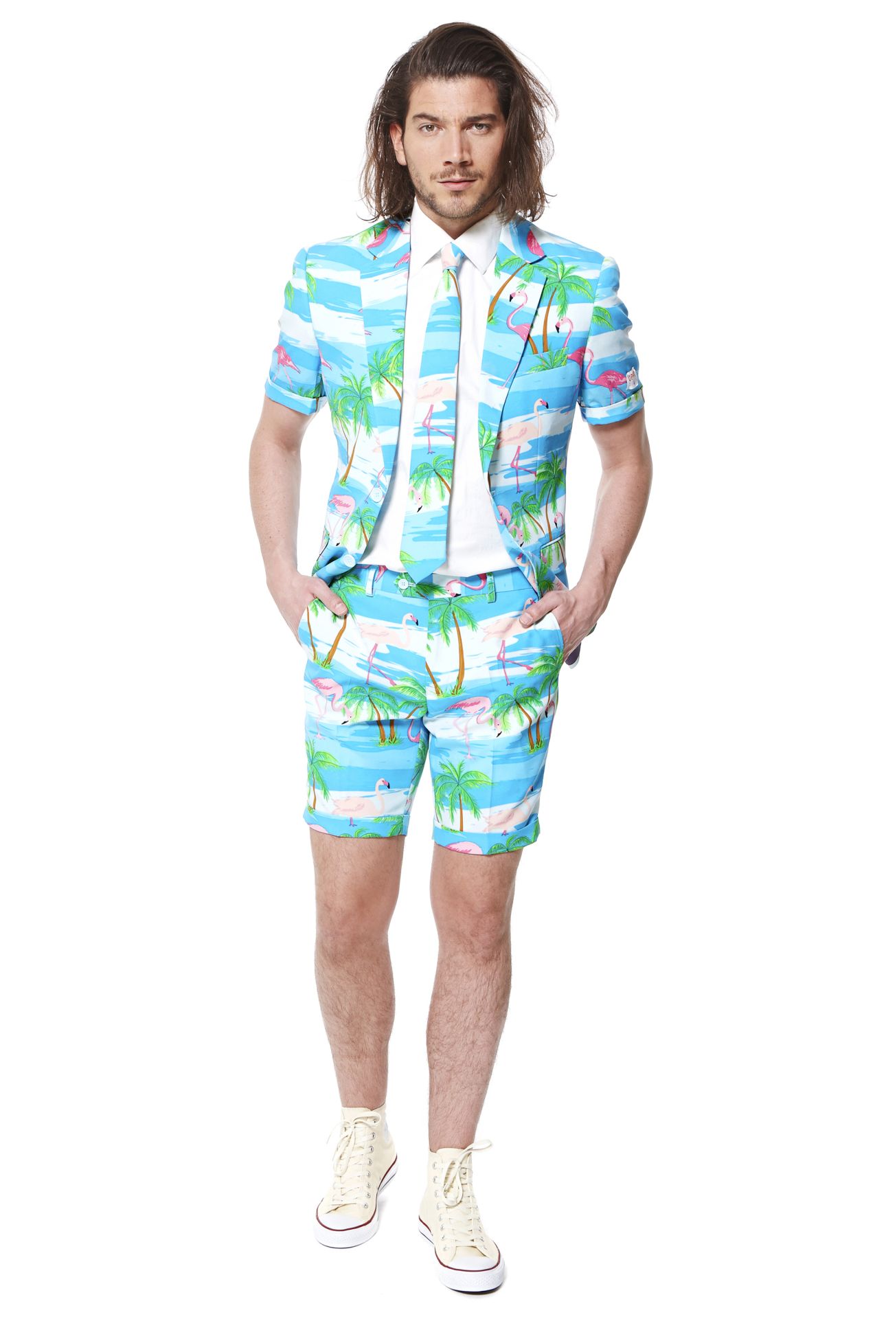 OppoSuits Verkleedpak Men's Summer Flaminguy Maat 48 - Short +Vest Korte Mouw + Das