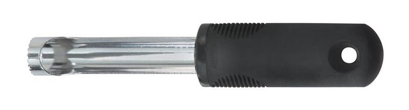 Met de OXO Appelboor maak je in een handomdraai perfecte appelringen. De scherpe roestvrijstalen boor glijdt gemakkelijk in de appel. Met een enkele schudbeweging verwijder je het klokhuis weer uit de boor. Dankzij het comfortabele anti-slip handvat zou je wel 100 appels achter elkaar kunnen boren. Zo gemakkelijk gaat het.