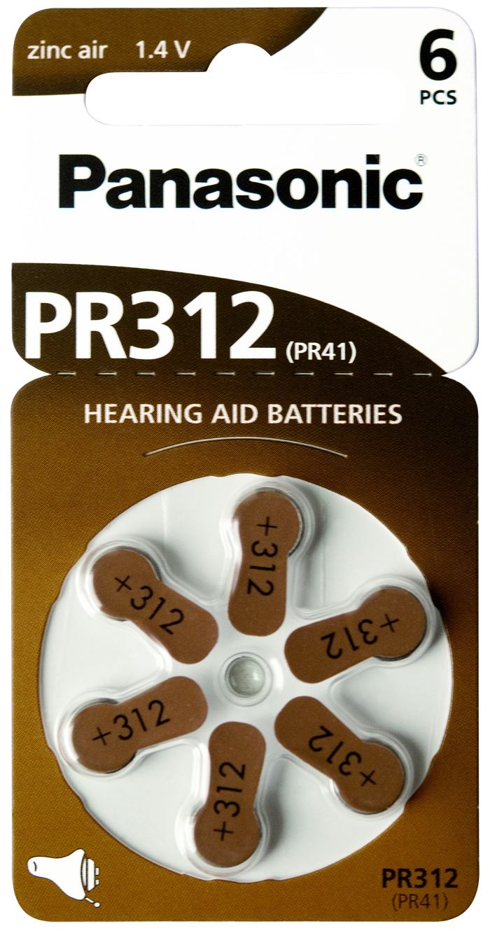 Panasonic Batterij Zinc Air Hoorapparaat Bruin PR312/PR41 - 6 stuks