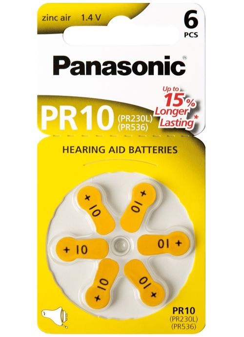 Panasonic Batterij Zinc Air Hoorapparaat Geel PR10/PR230L/PR536 - 6 stuks