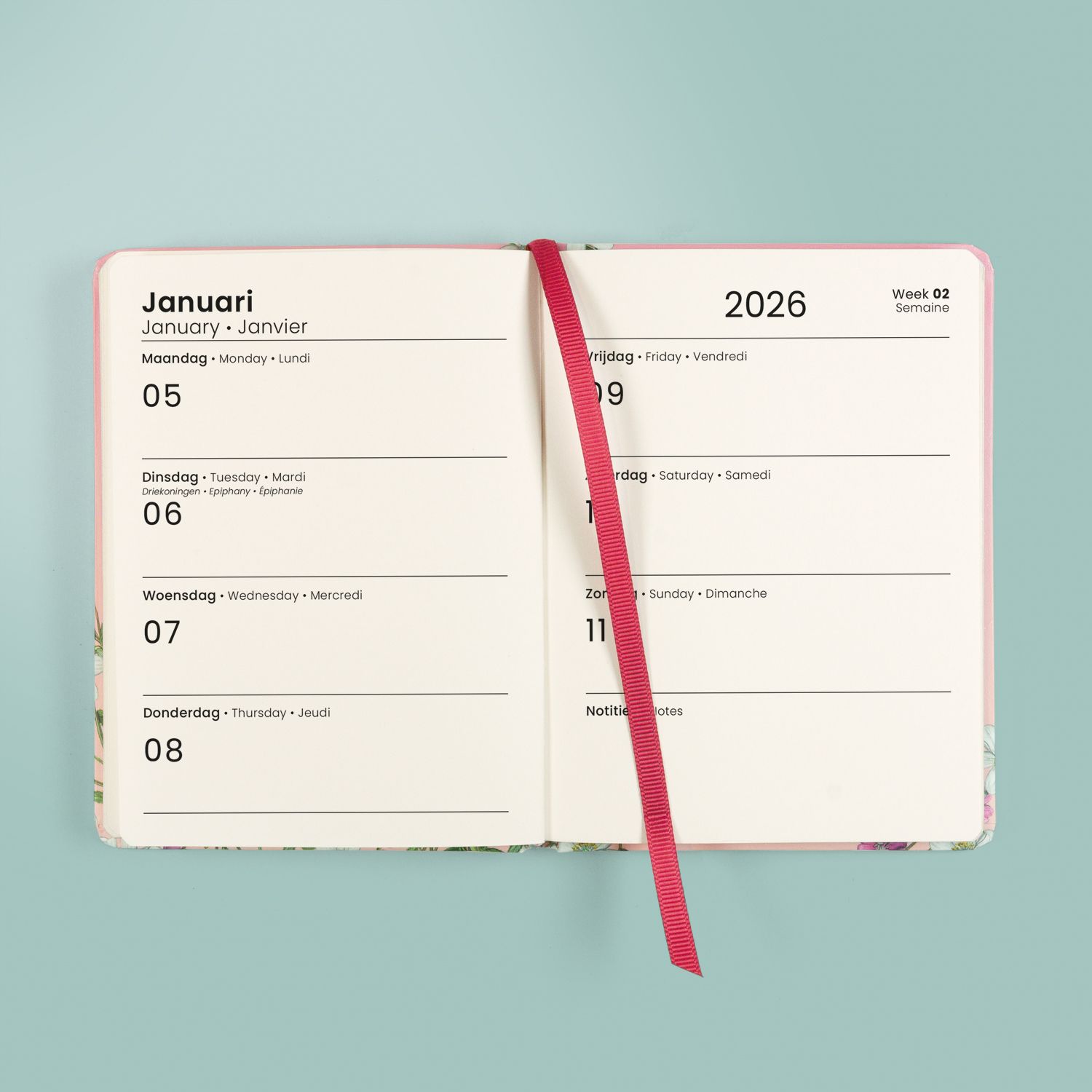 Paperclip Agenda 2026 Botanica Flexi Cover 15M Spiraal 1week/2pag 12x15 cm