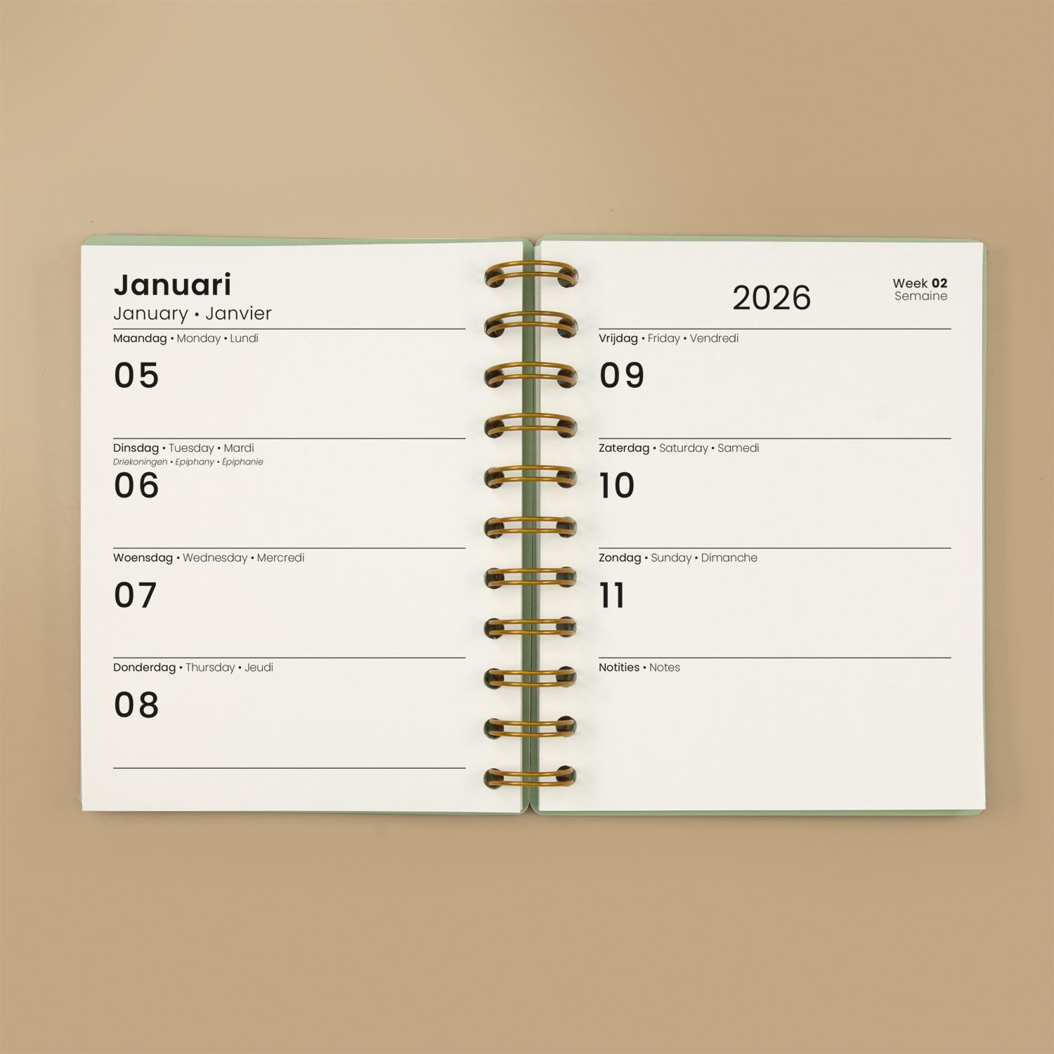 Paperclip Agenda 2026 Botanica Flexi Cover 15M Spiraal 1week/2pag 12x15 cm
