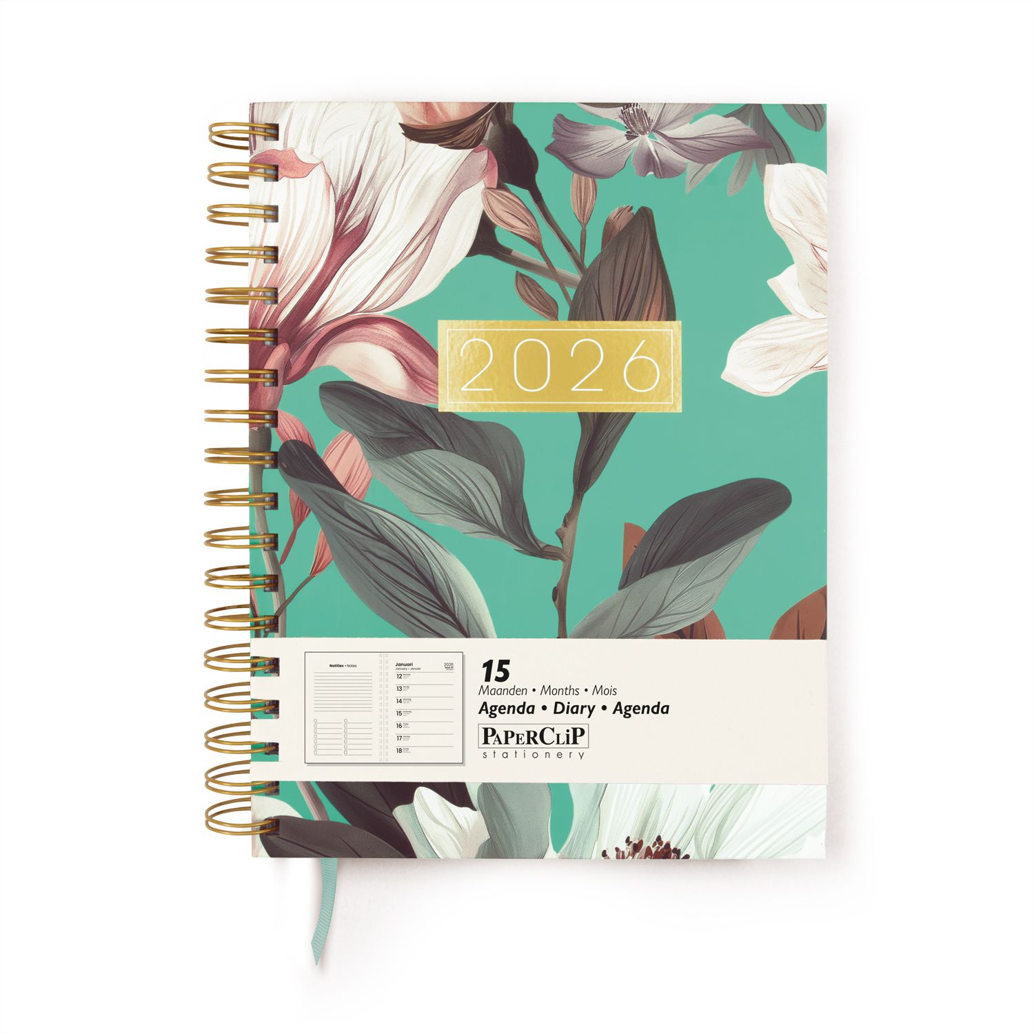 Paperclip Bureau Agenda 2026 Bloom 15M Spiraal 1week/1pag 17.5x23.5 cm